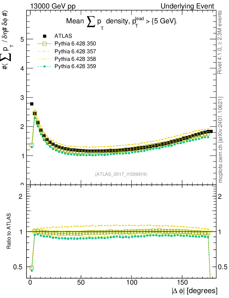 Underlying Event : Δφ distributions : Σ(pT) vs Δφ