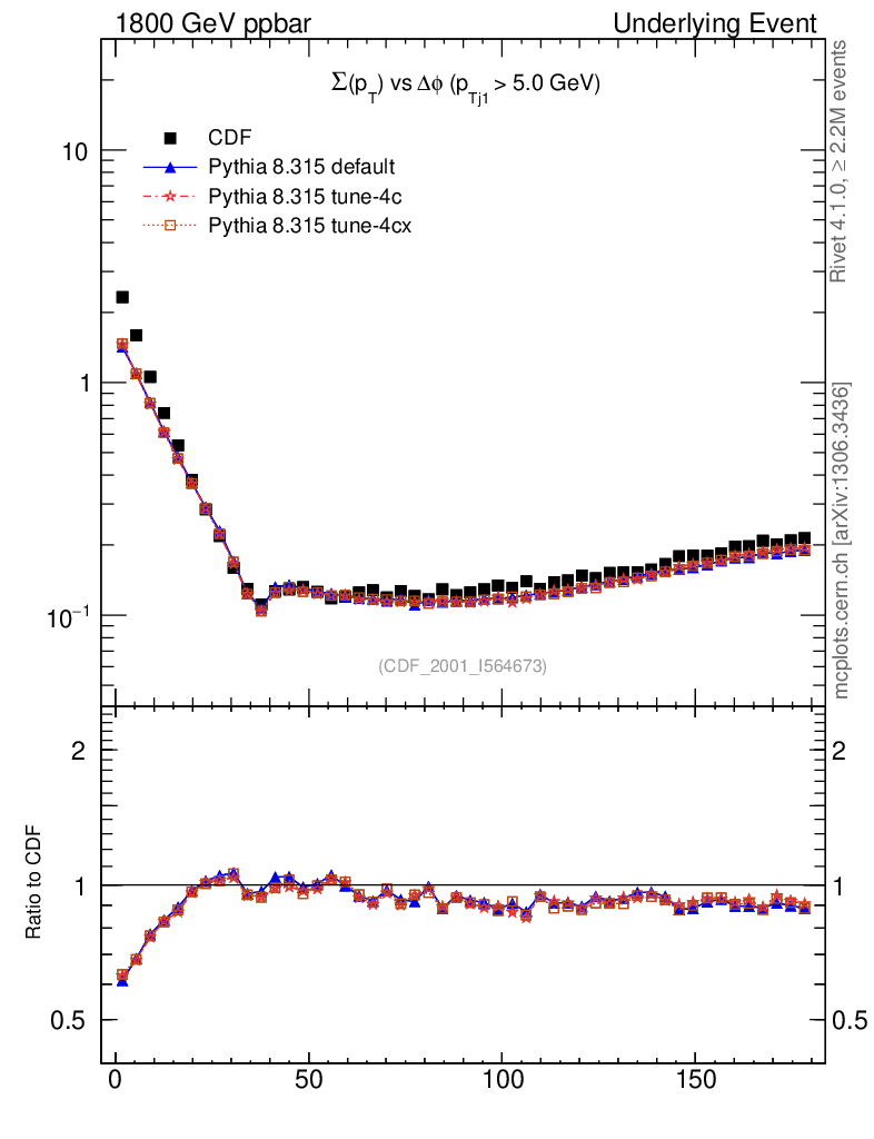 Underlying Event : Δφ distributions : Σ(pT) vs Δφ