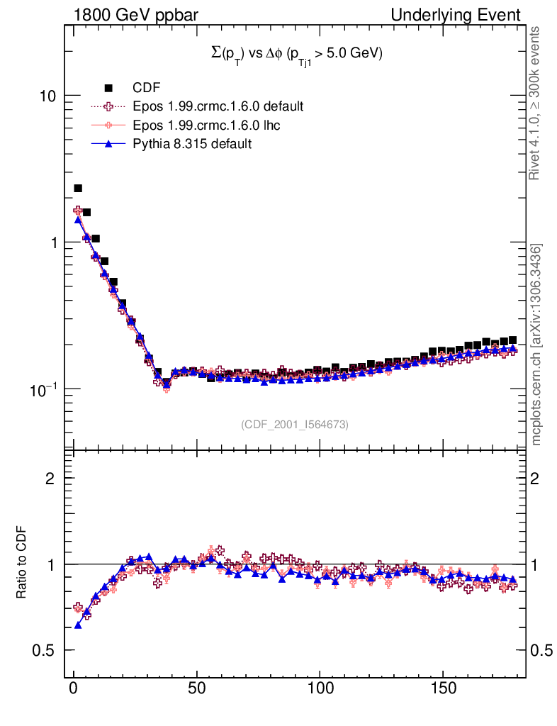 Underlying Event : Δφ distributions : Σ(pT) vs Δφ
