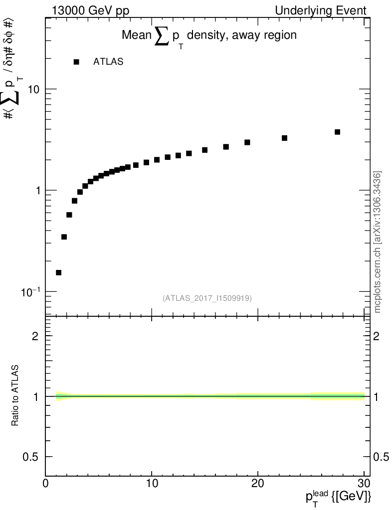 Plot of sumpt-vs-pt-away in 13000 GeV pp collisions