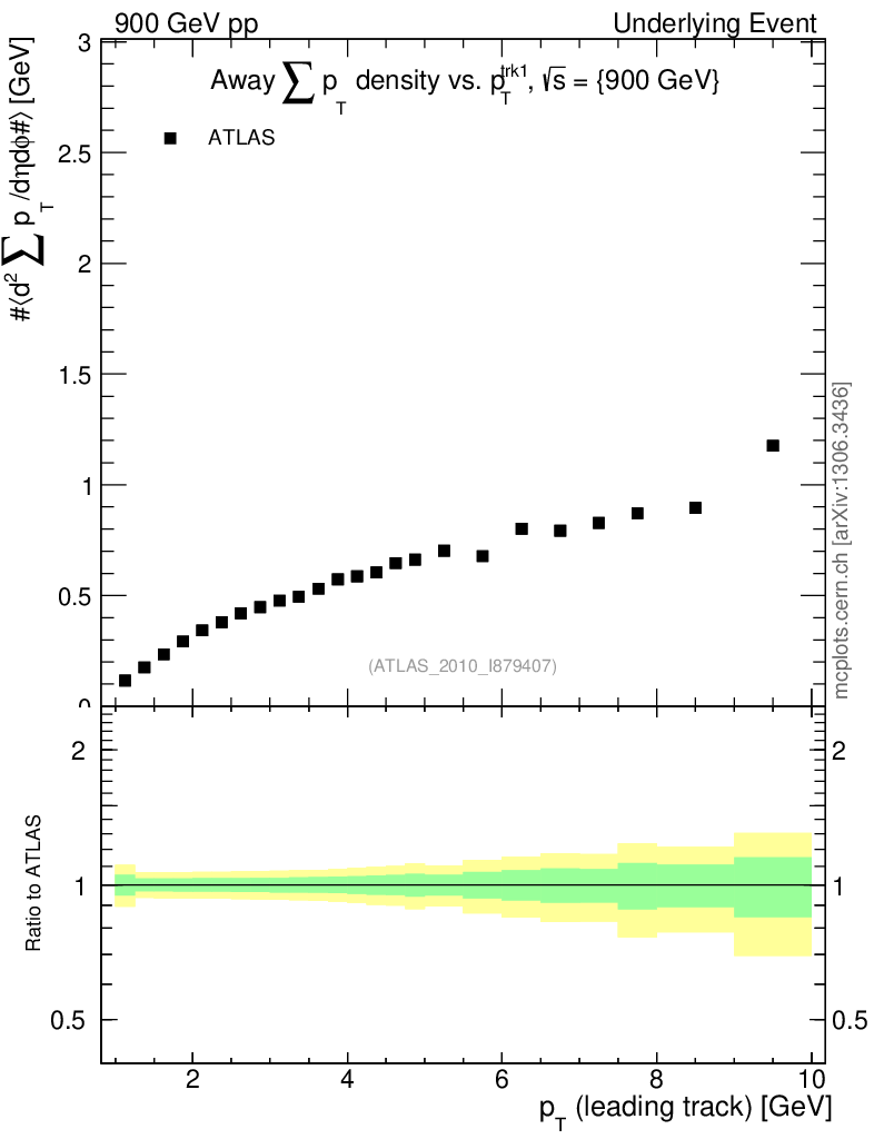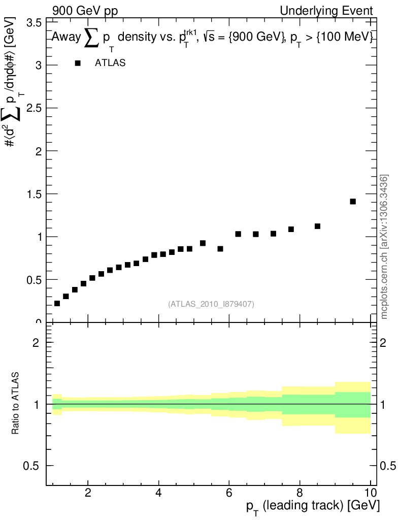 Plot of sumpt-vs-pt-away in 900 GeV pp collisions
