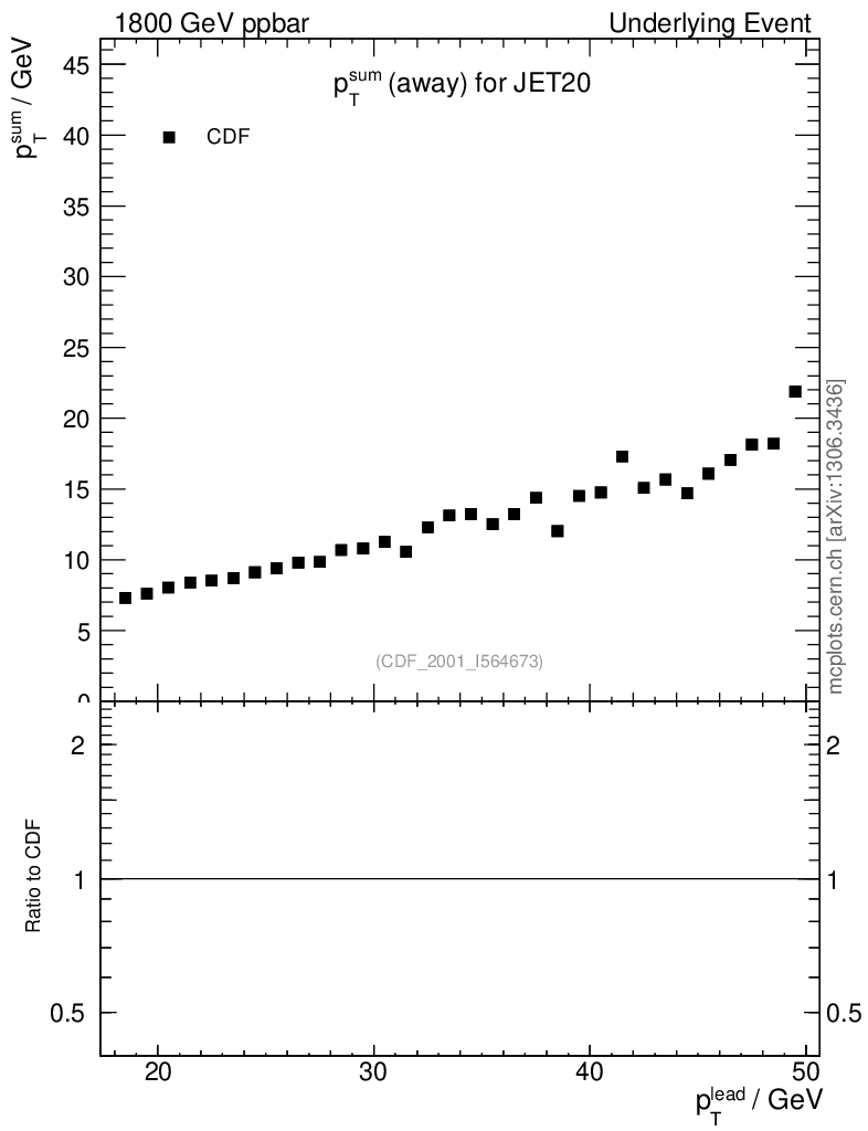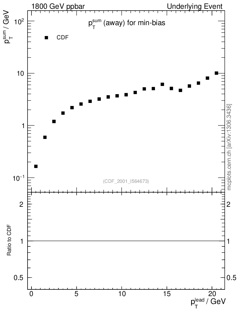 Plot of sumpt-vs-pt-away in 1960 GeV ppbar collisions