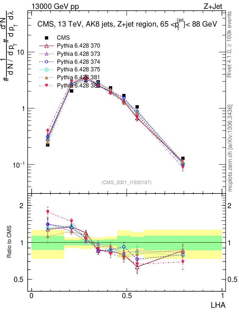 Choose generators/versions/tunes to plot : either from a pre-defined preset (left button) or from all available MCs (right button)