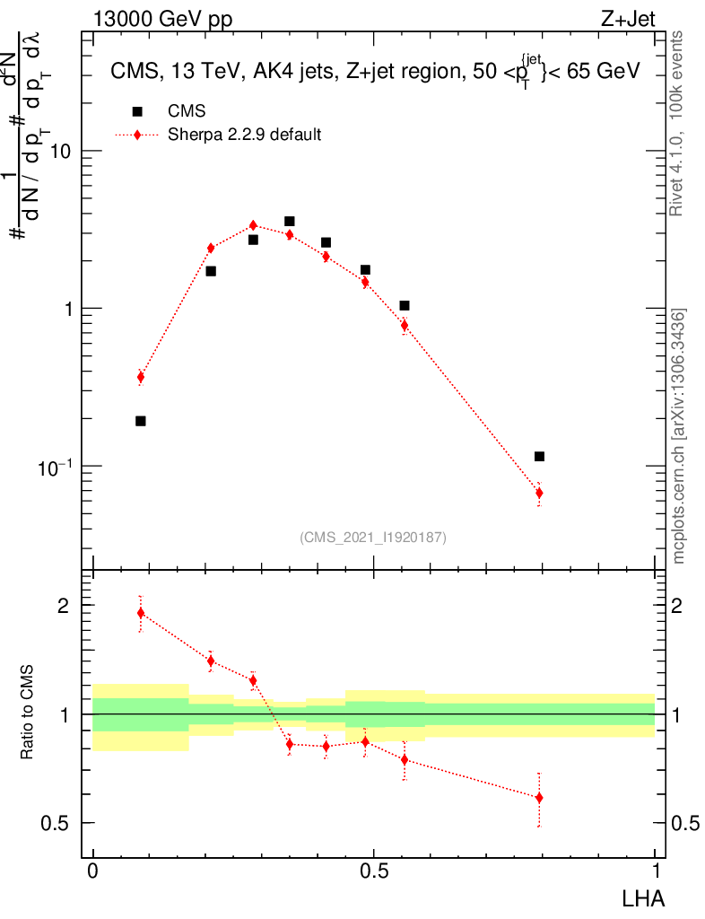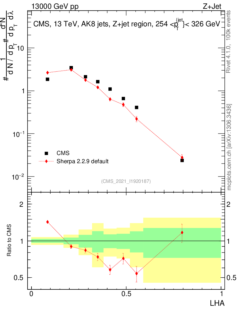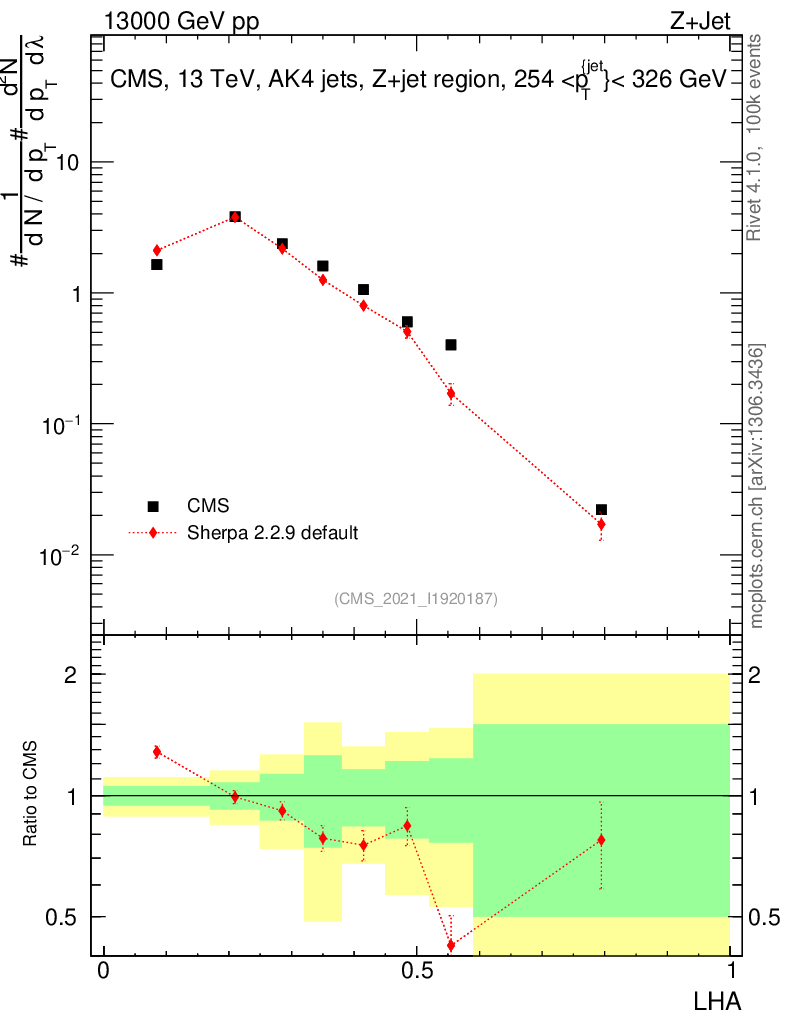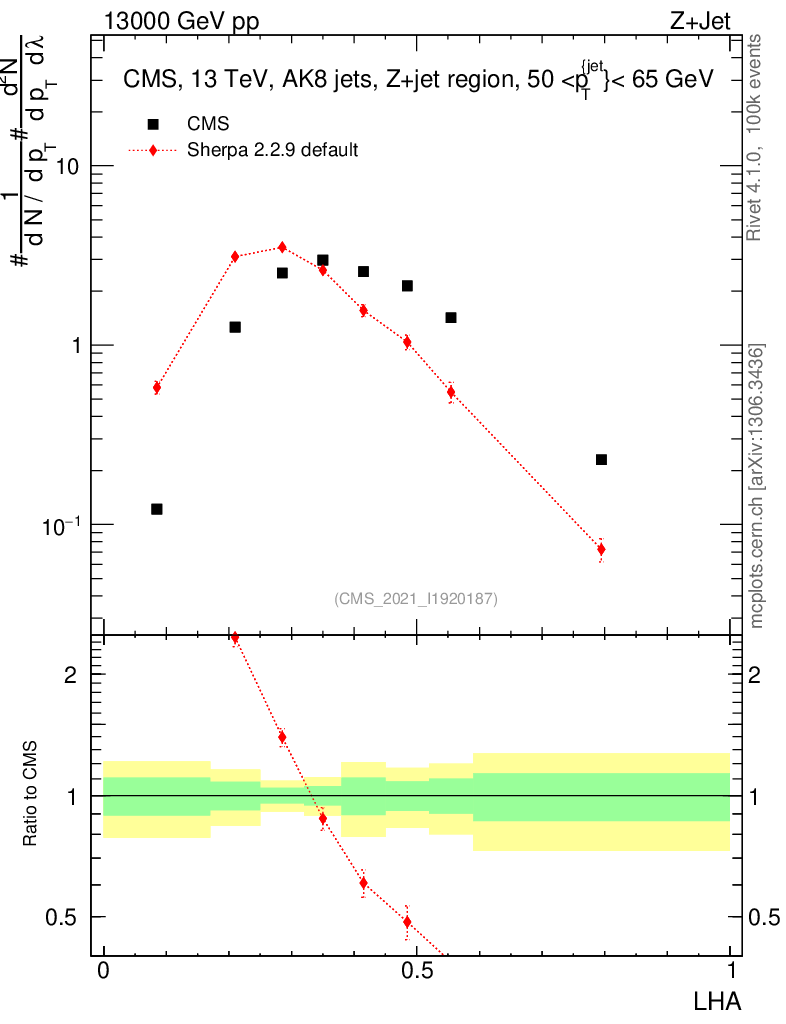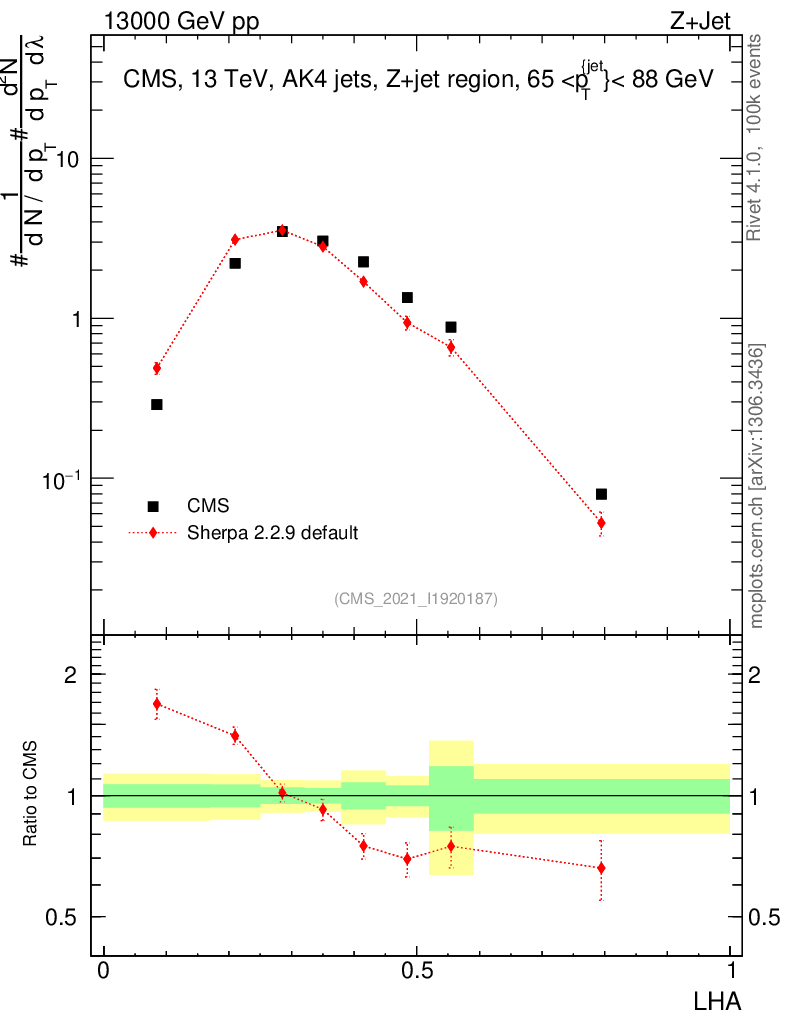 Plot of j.lha in 13000 GeV pp collisions