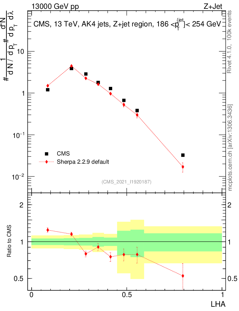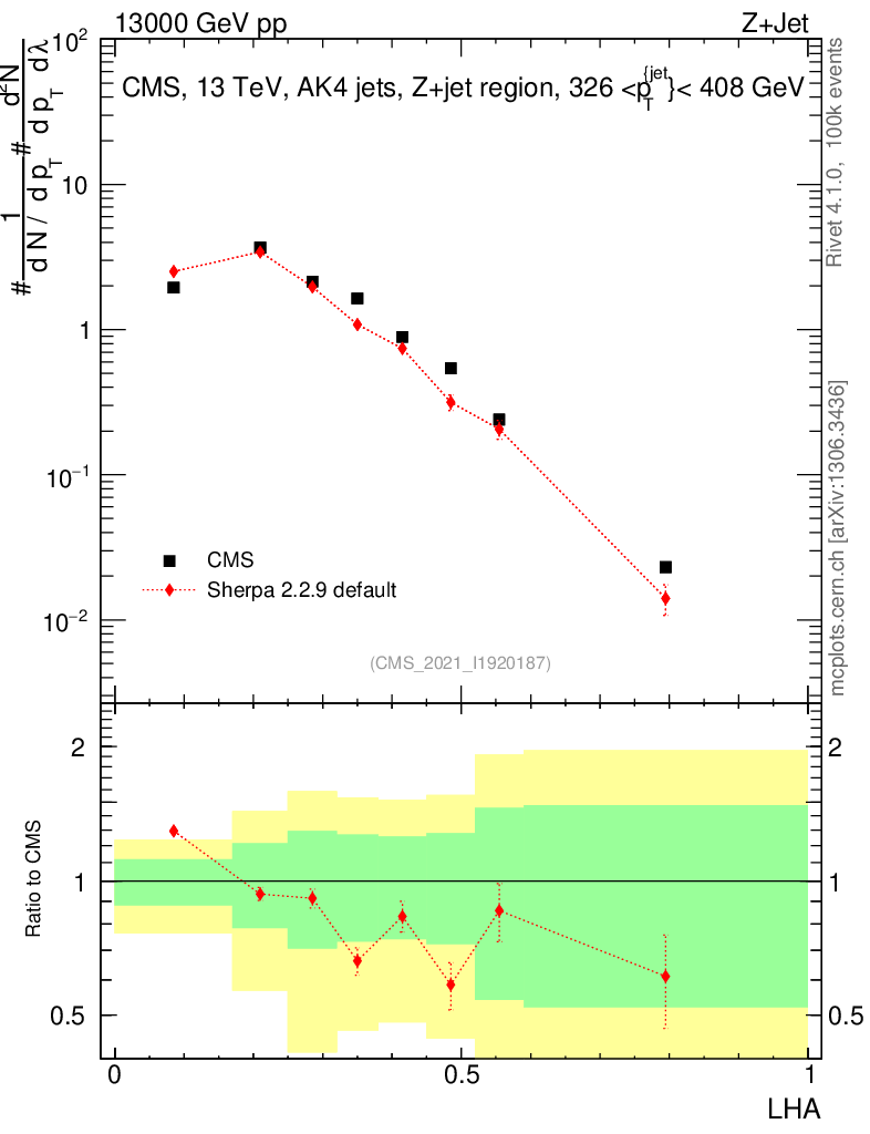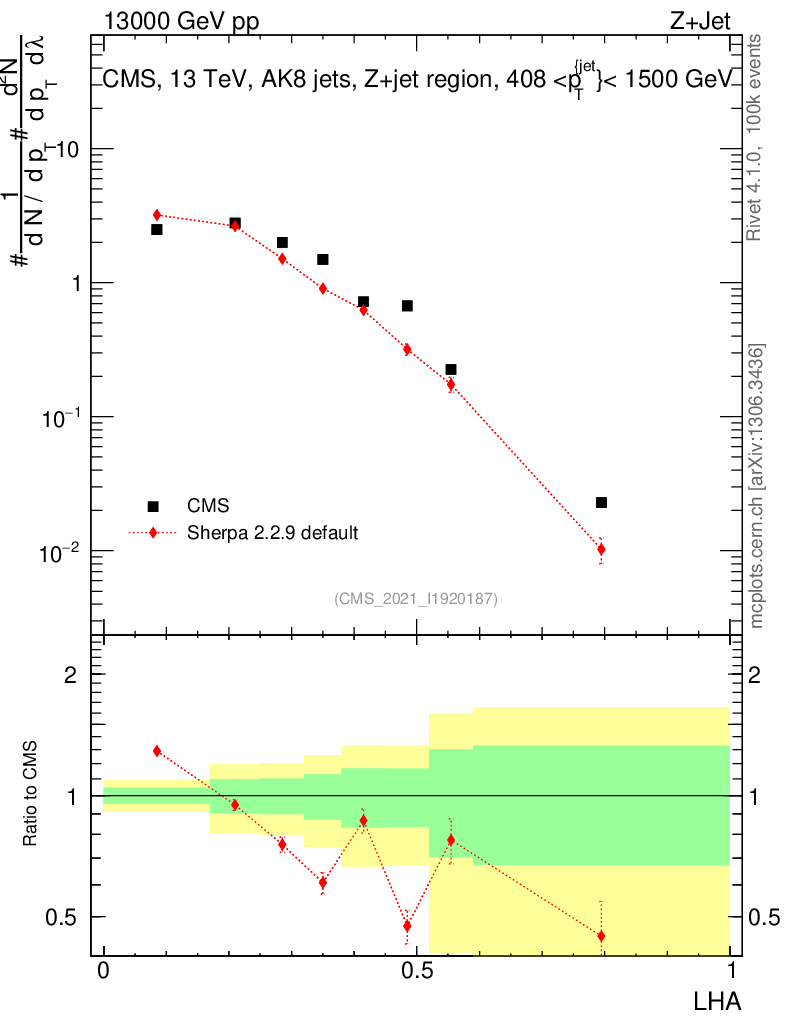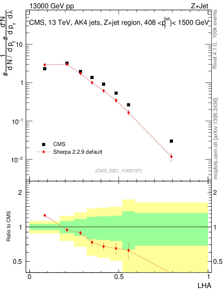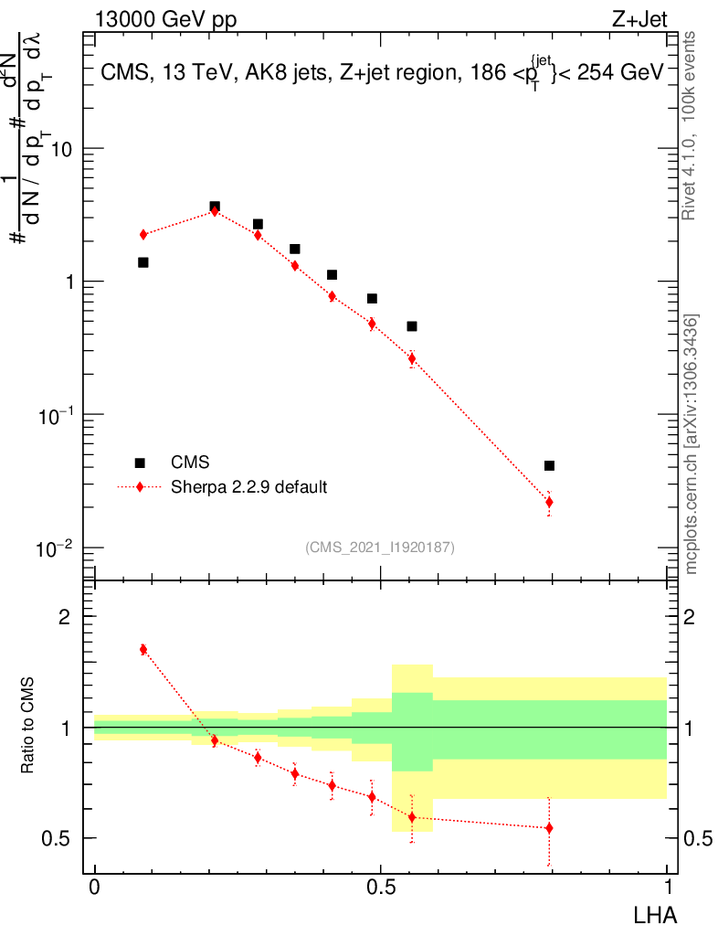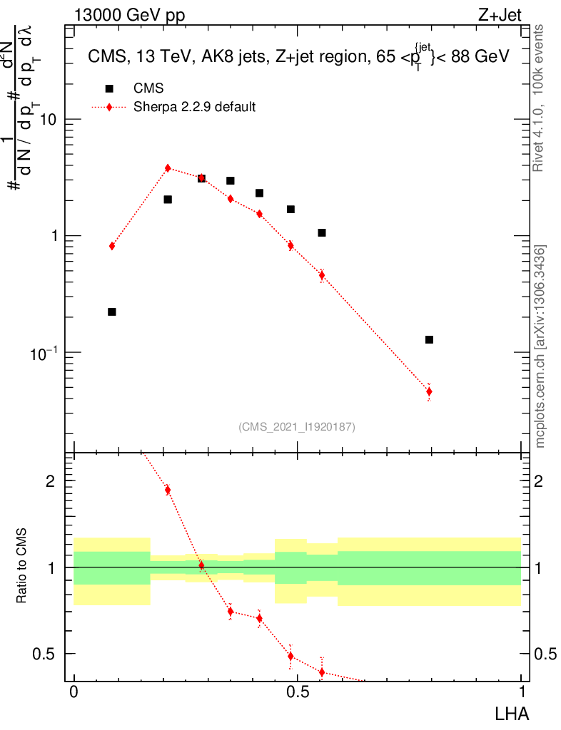 Plot of j.lha in 13000 GeV pp collisions