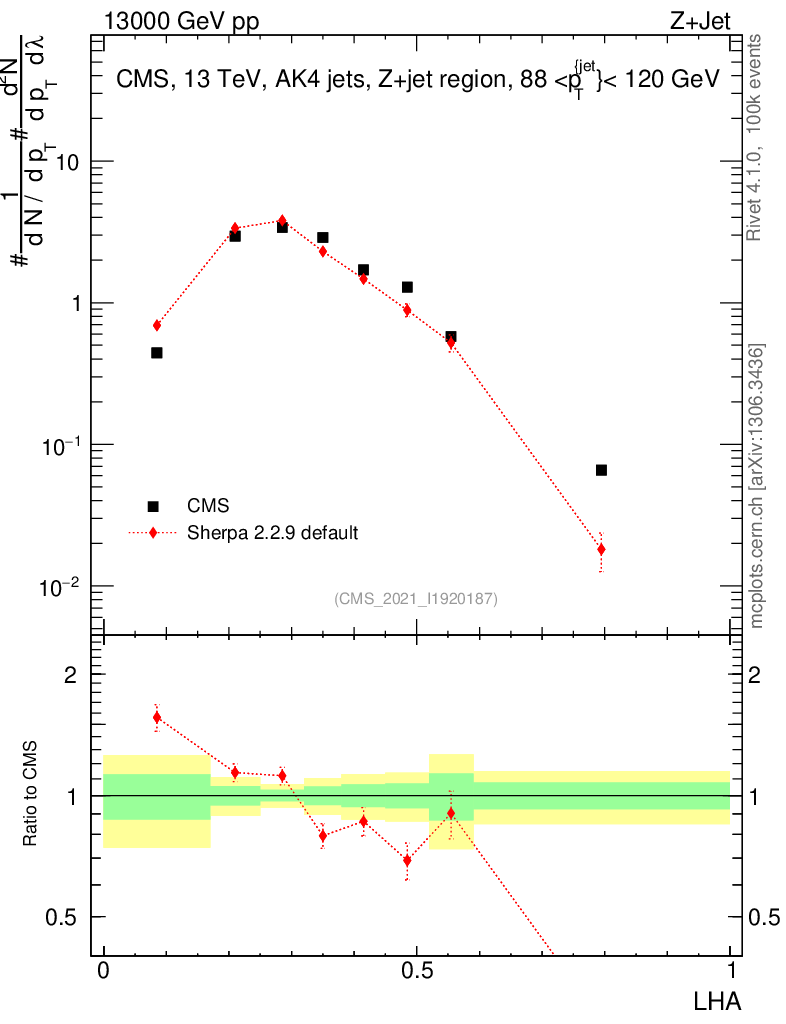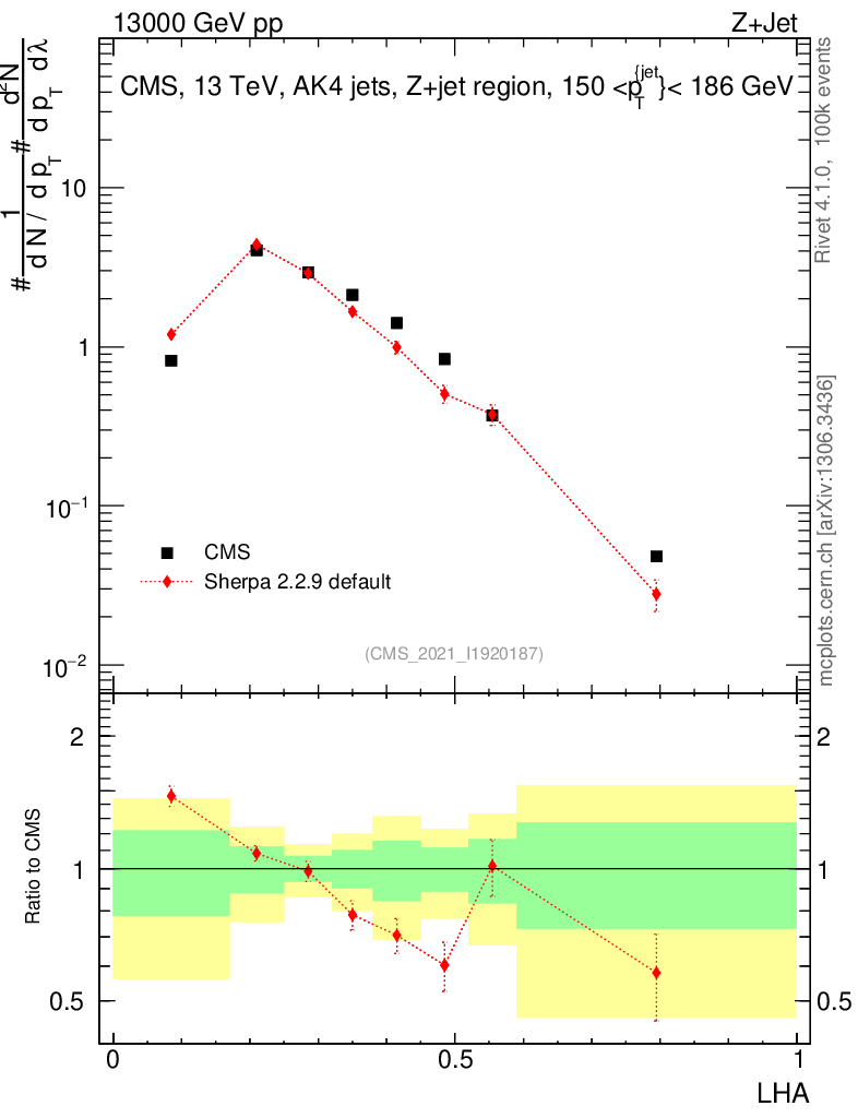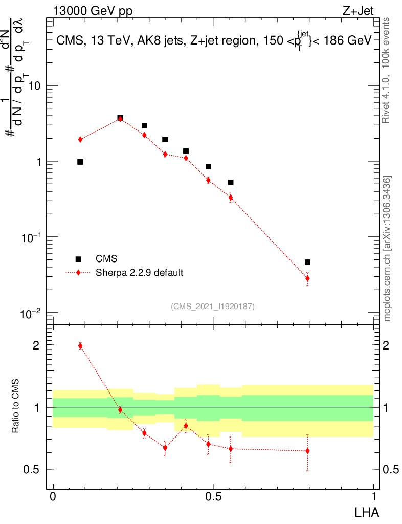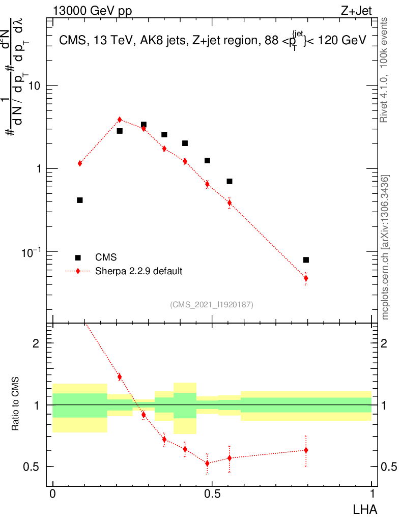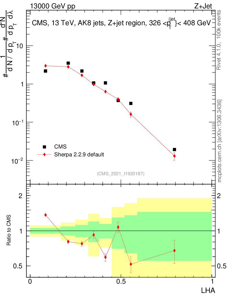 Plot of j.lha in 13000 GeV pp collisions