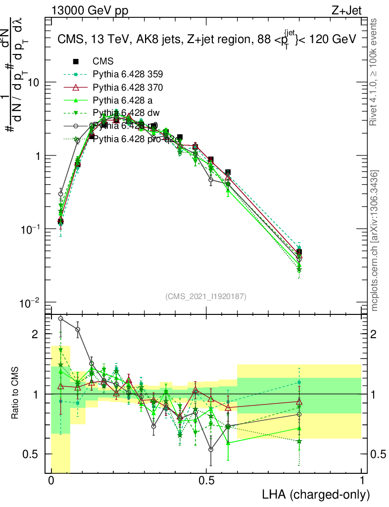 Choose generators/versions/tunes to plot : either from a pre-defined preset (left button) or from all available MCs (right button)