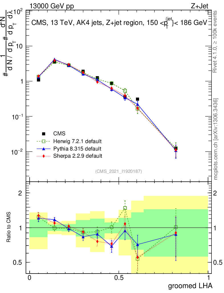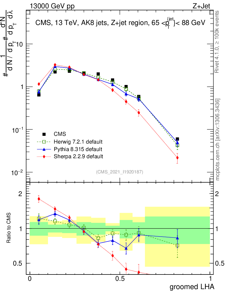Z+Jet : Generalized angularities : Groomed LHA λ