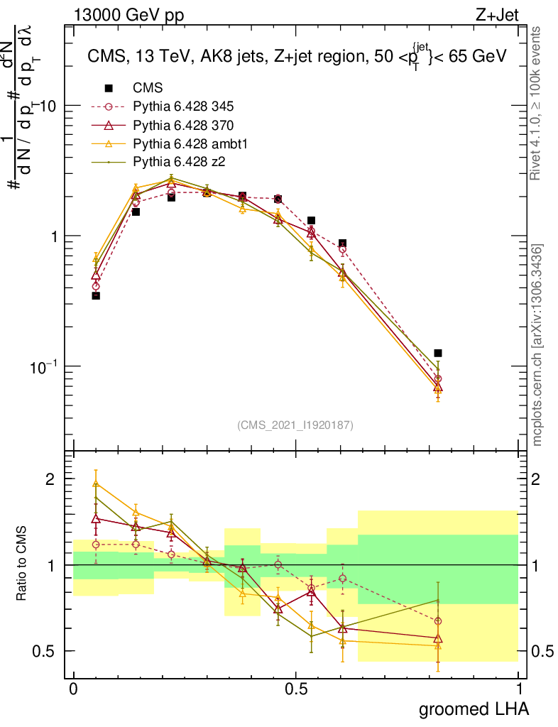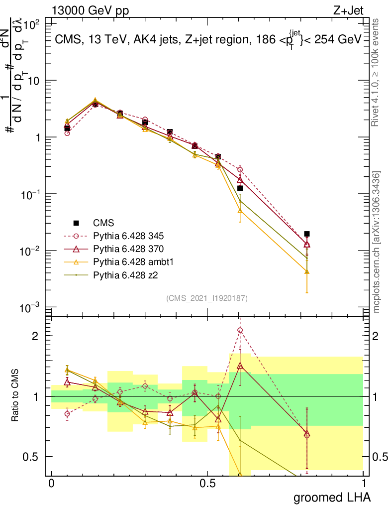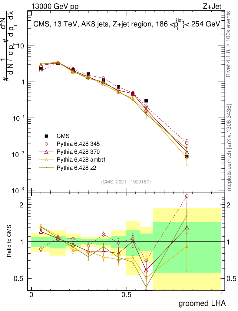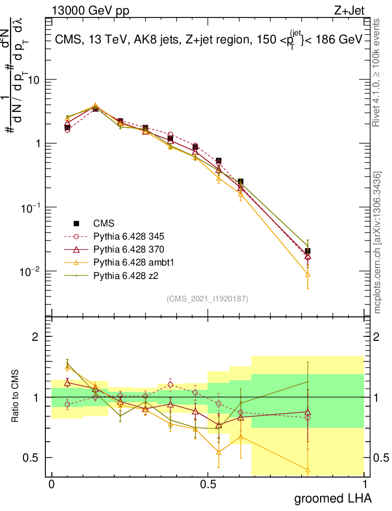 Z+Jet : Generalized angularities : Groomed LHA λ
