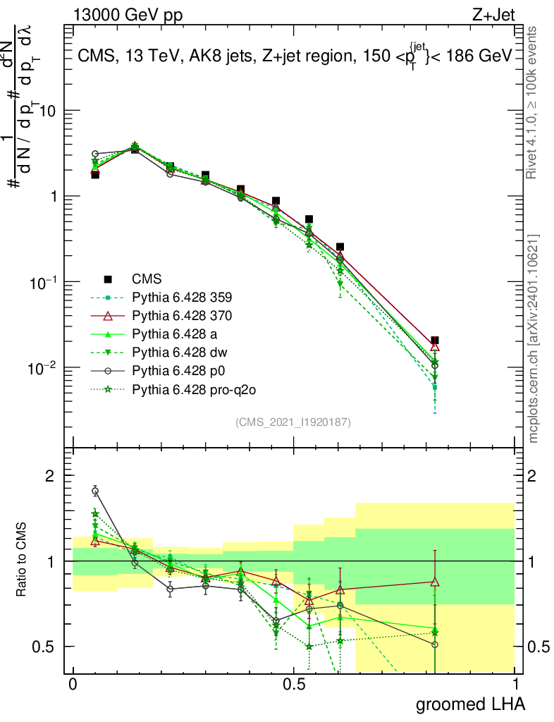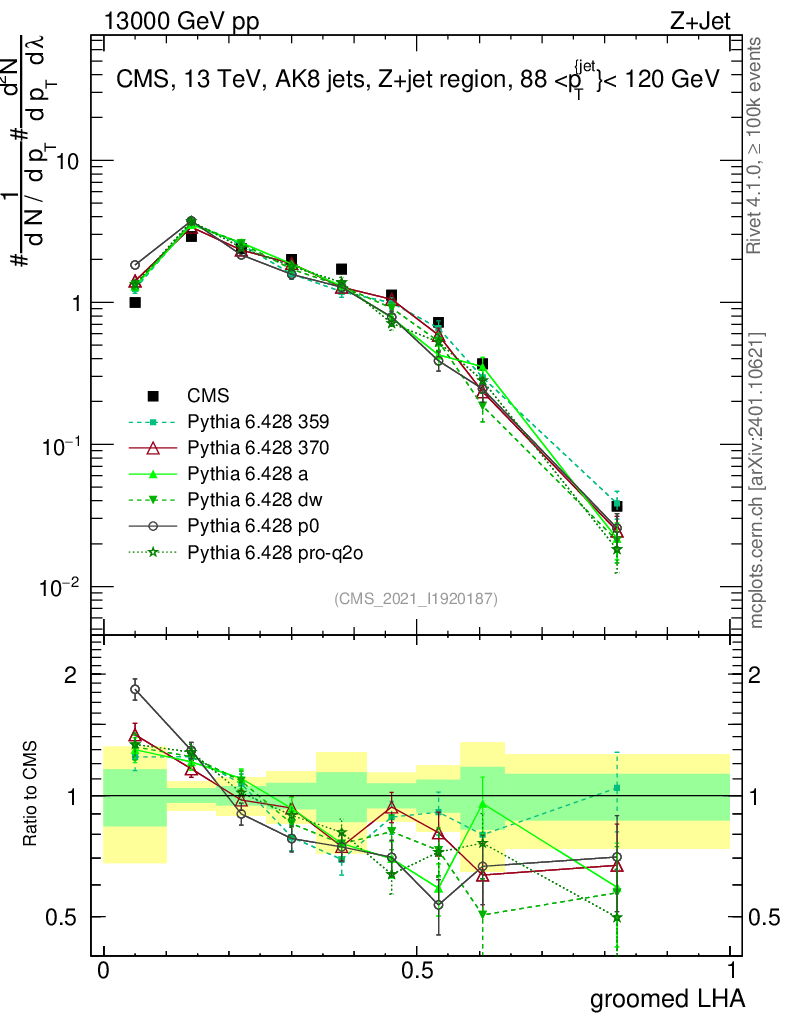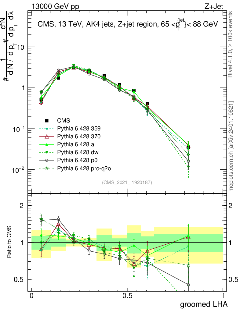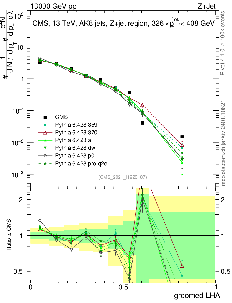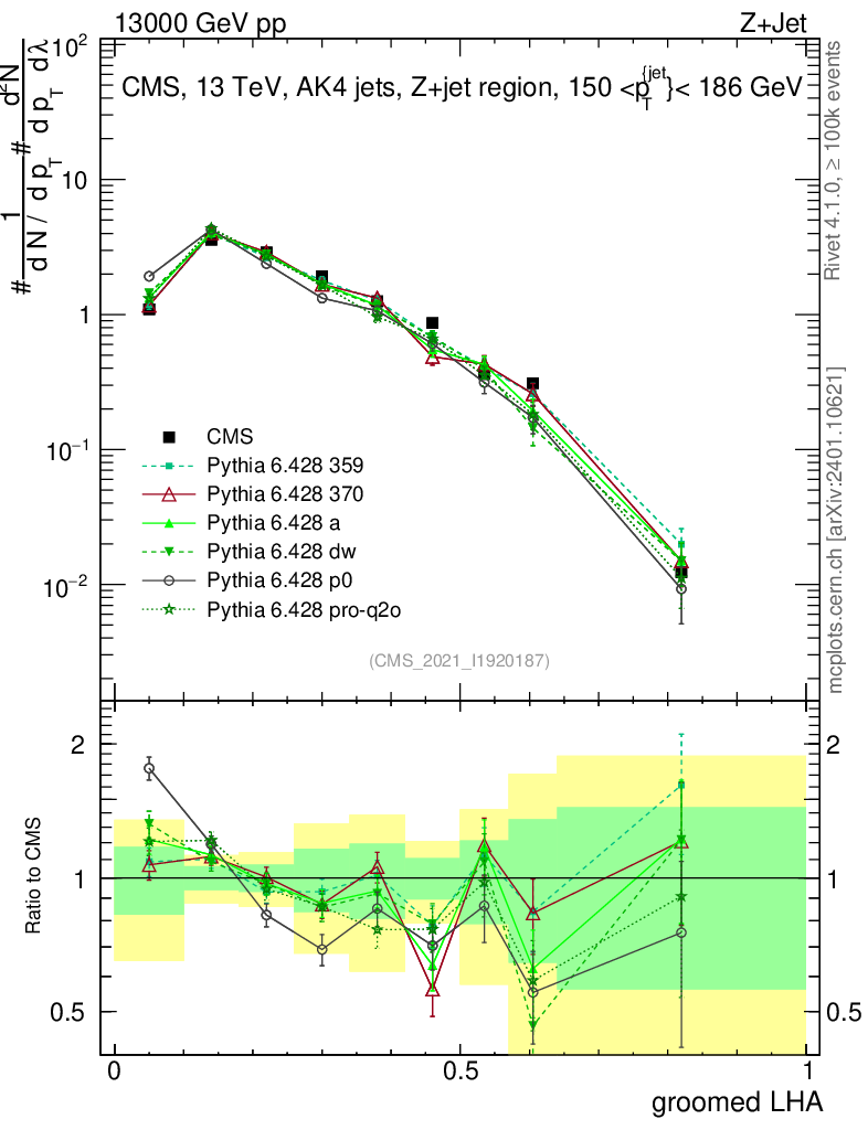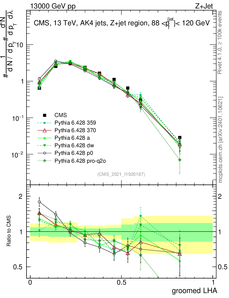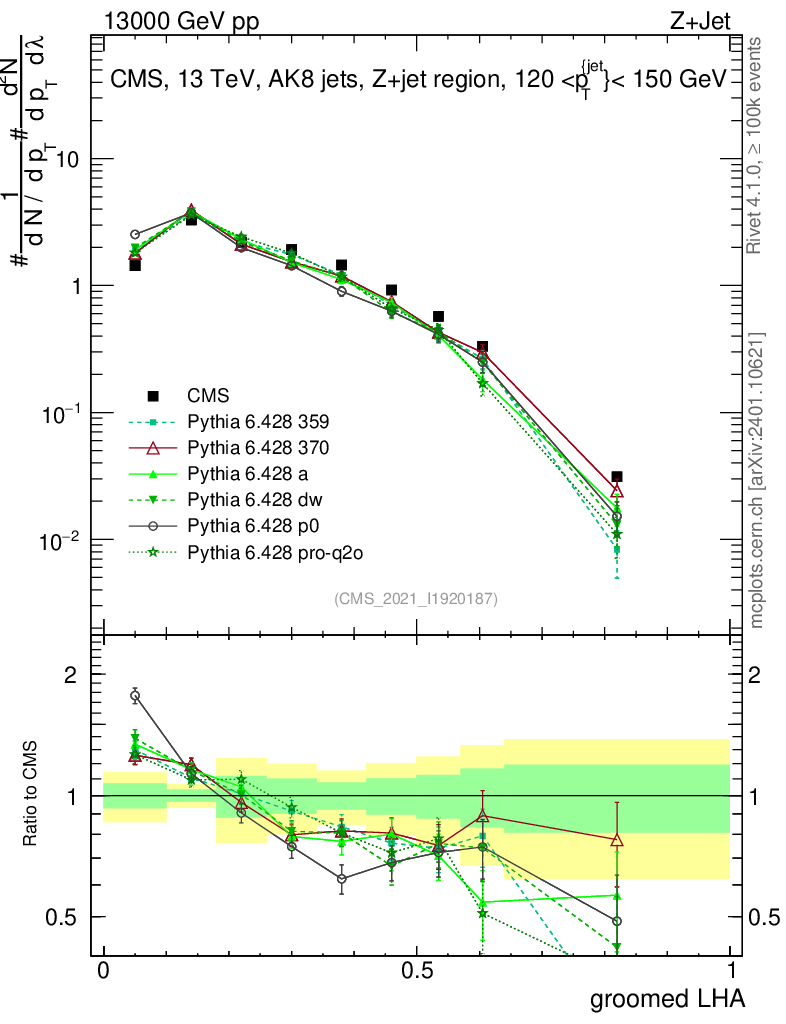 Z+Jet : Generalized angularities : Groomed LHA λ