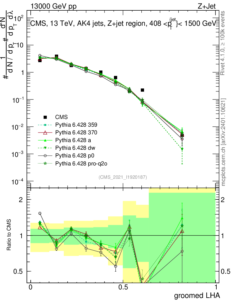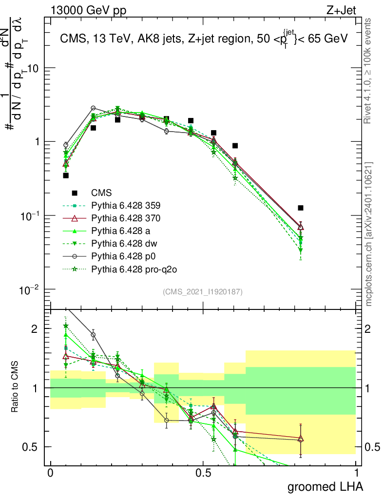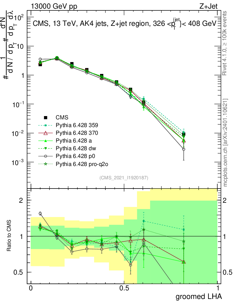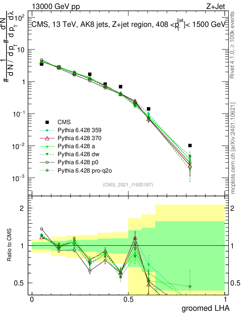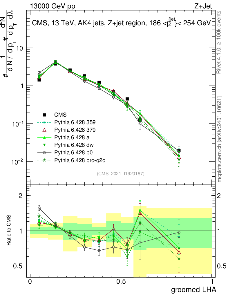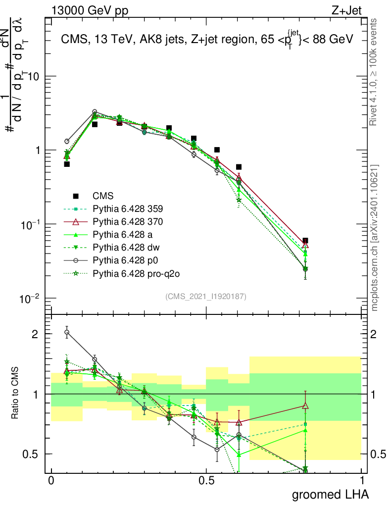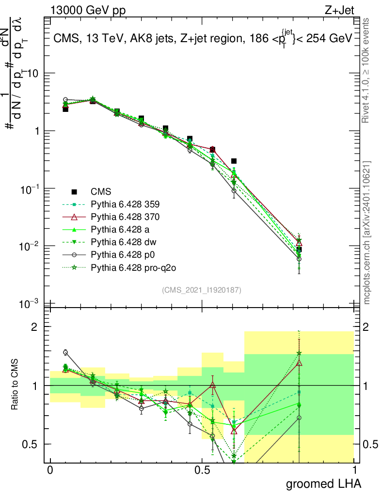 Z+Jet : Generalized angularities : Groomed LHA λ