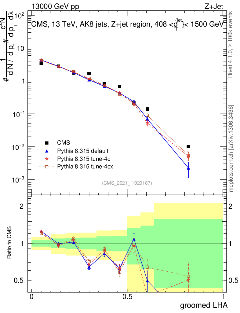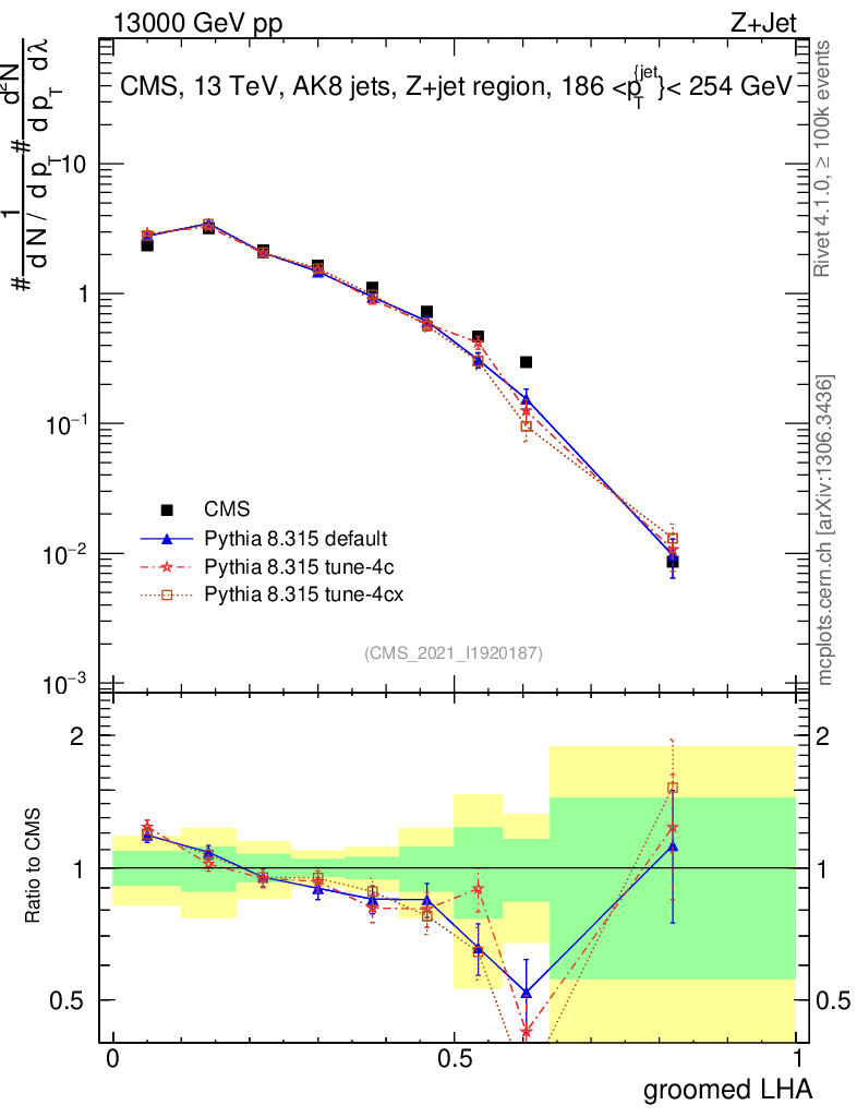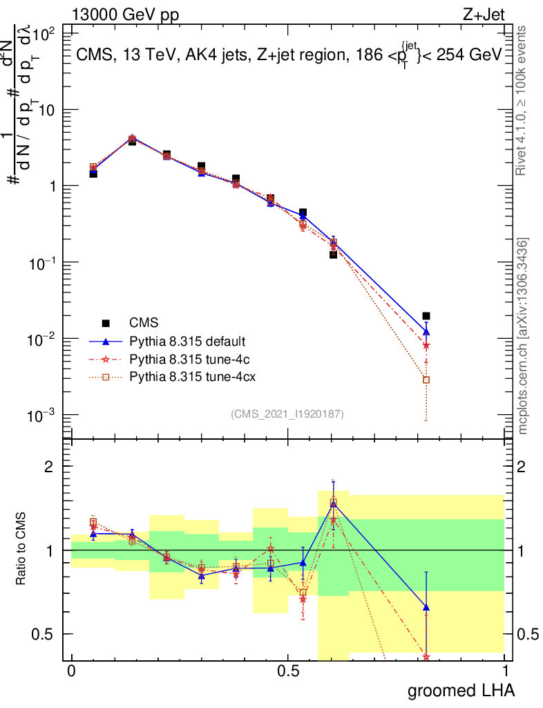 Z+Jet : Generalized angularities : Groomed LHA λ