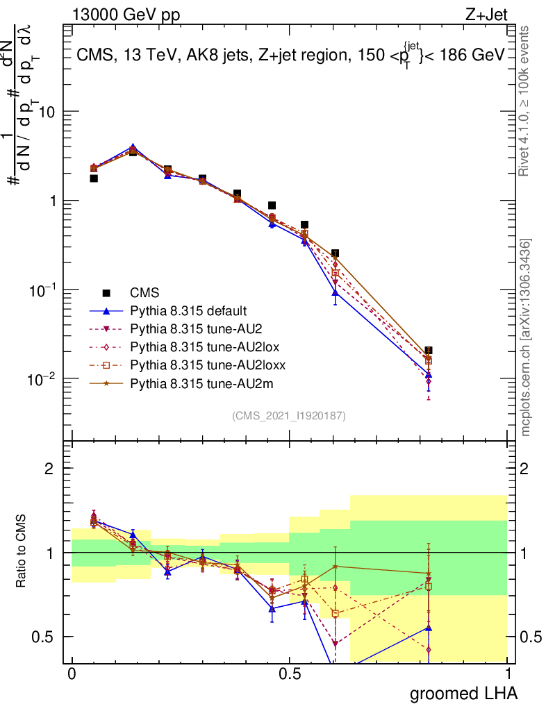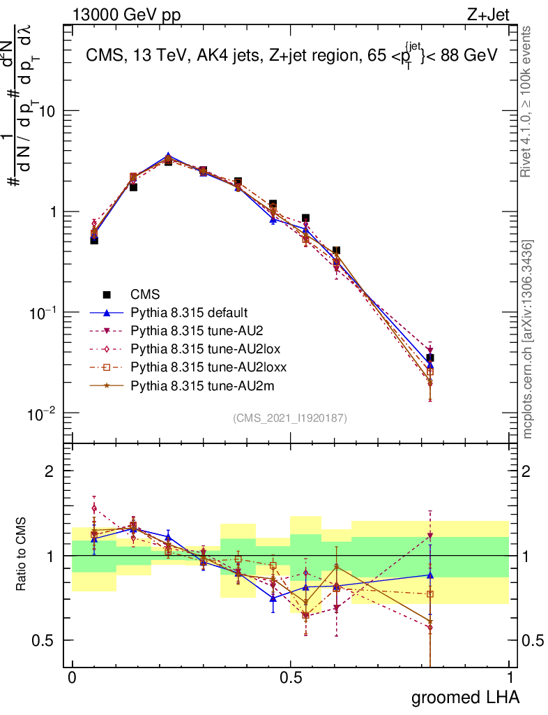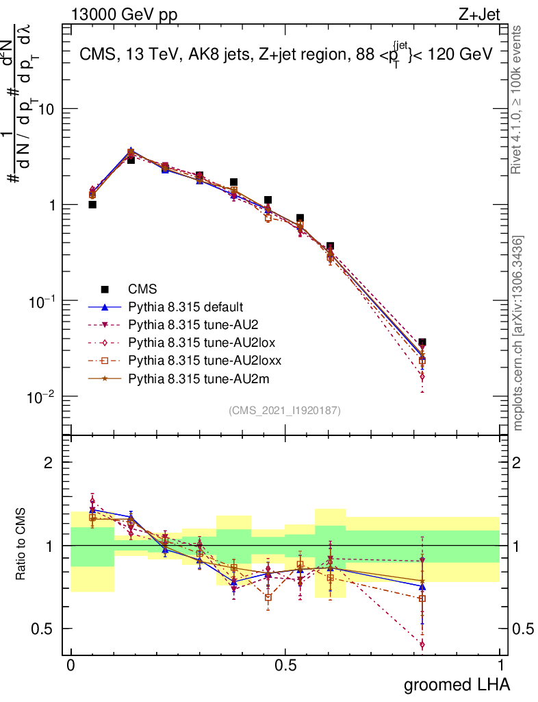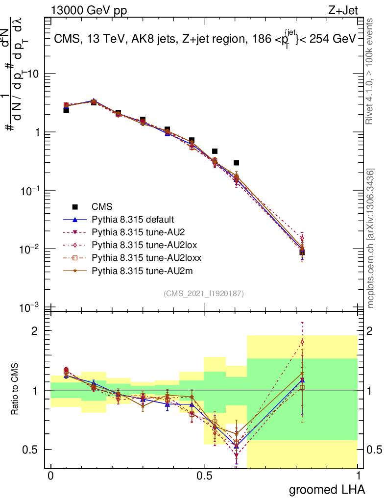 Z+Jet : Generalized angularities : Groomed LHA λ