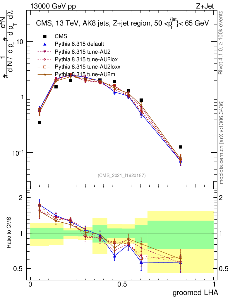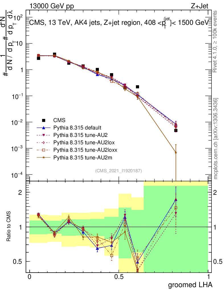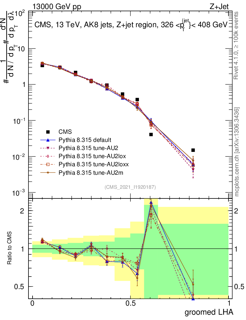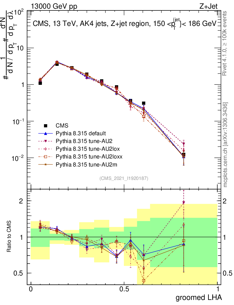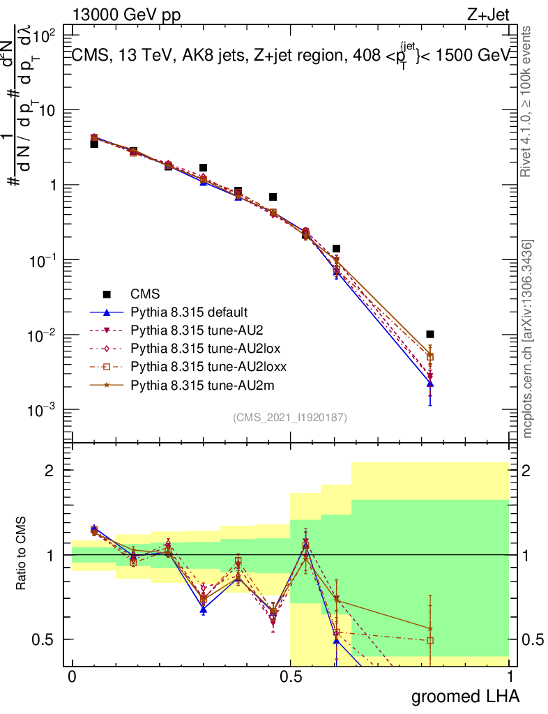 Z+Jet : Generalized angularities : Groomed LHA λ