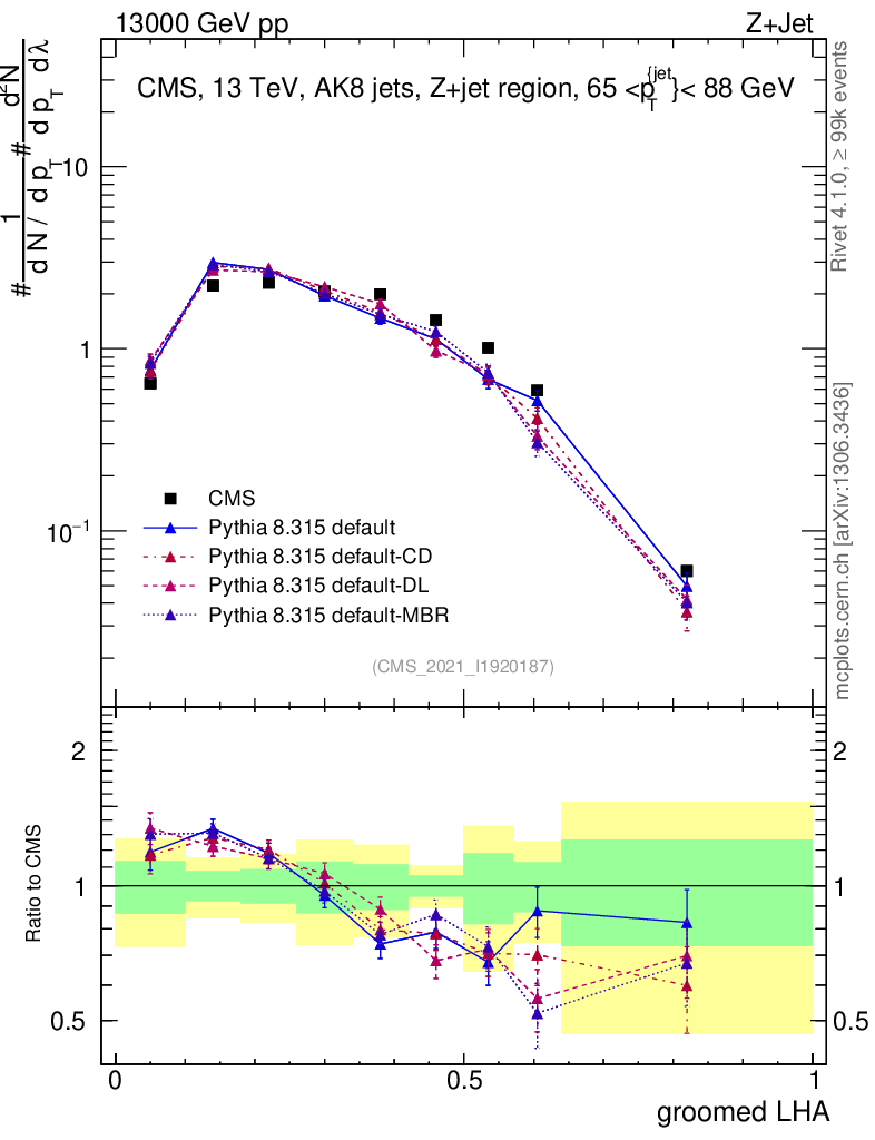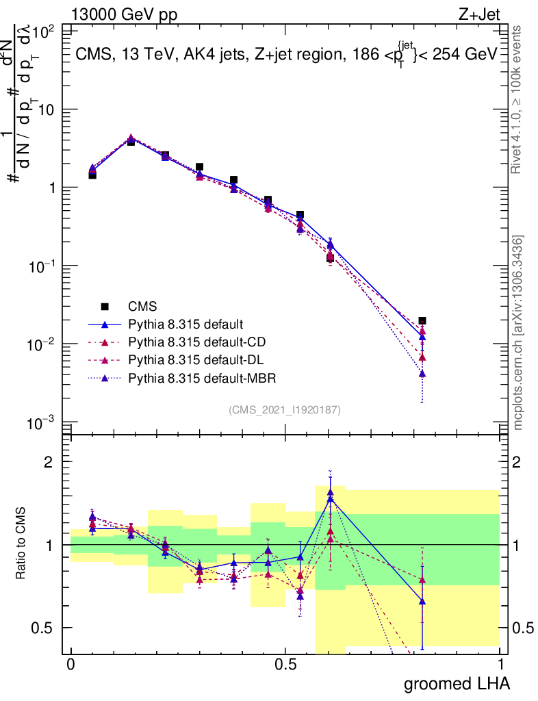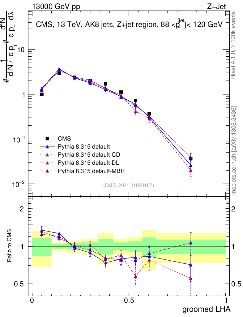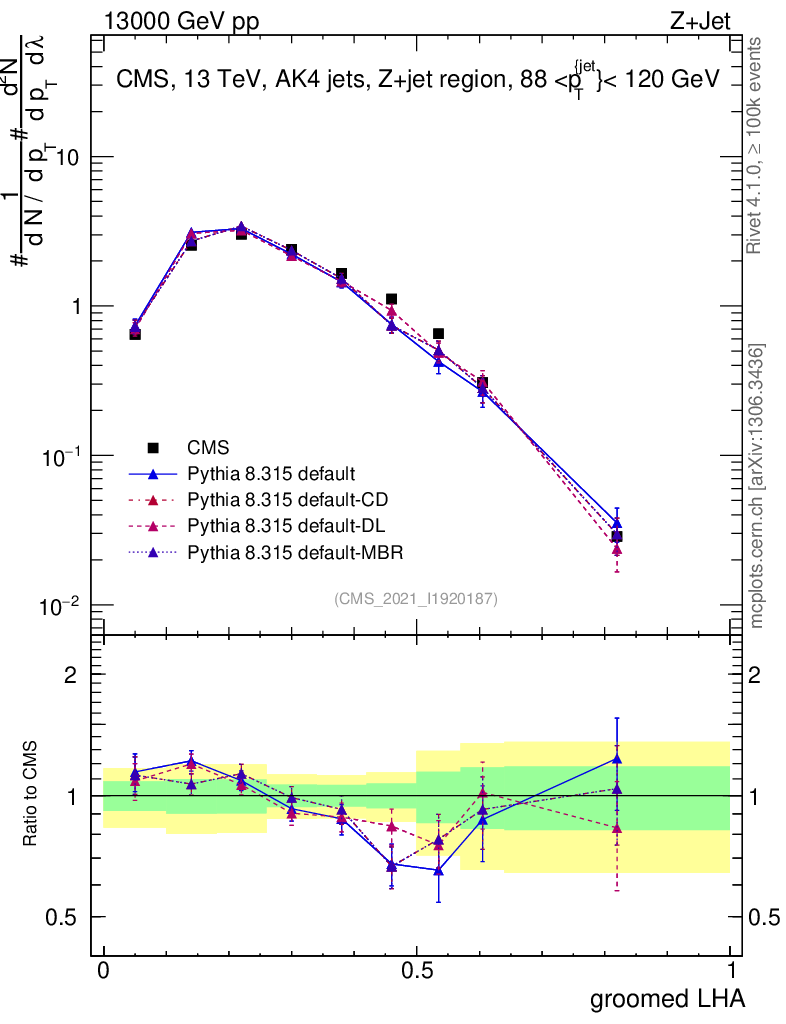 Z+Jet : Generalized angularities : Groomed LHA λ