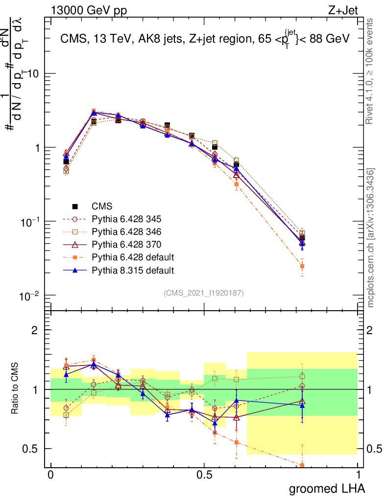 Z+Jet : Generalized angularities : Groomed LHA λ