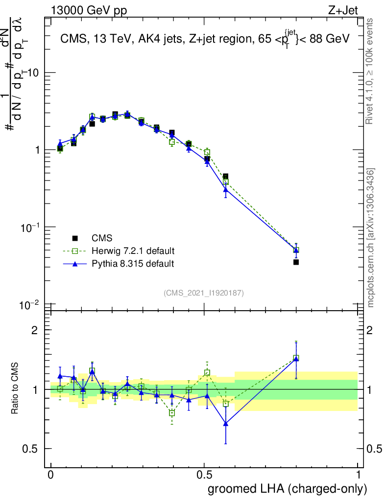 Z+Jet : Generalized angularities : Groomed LHA λ