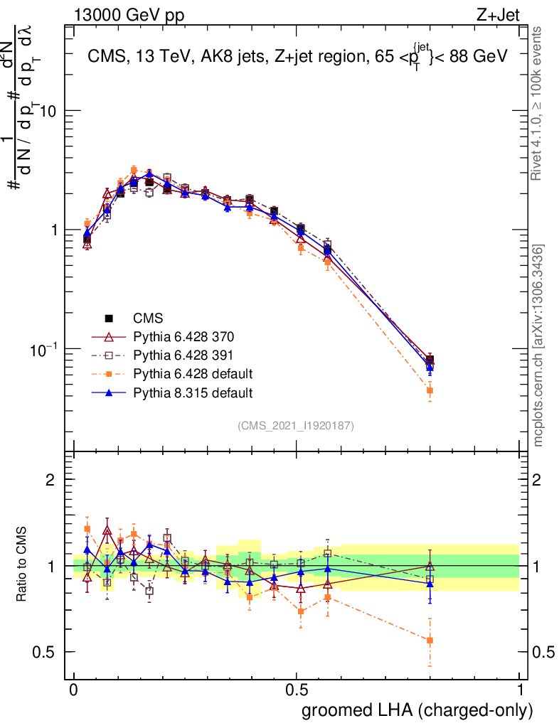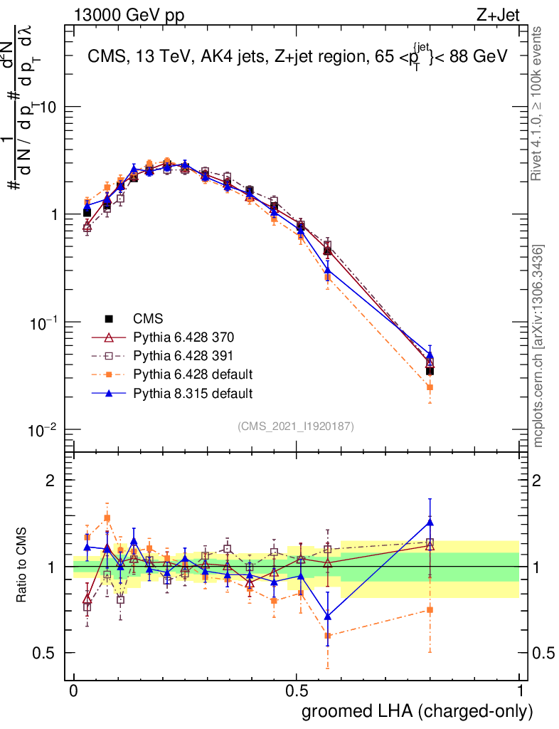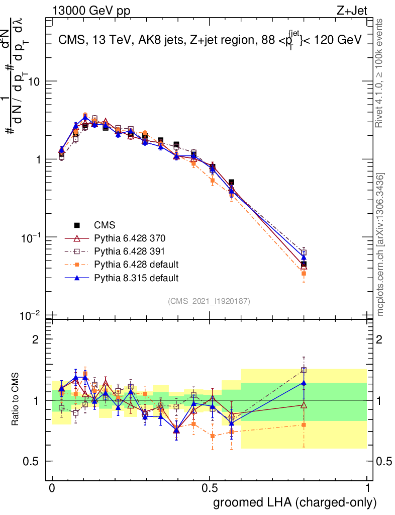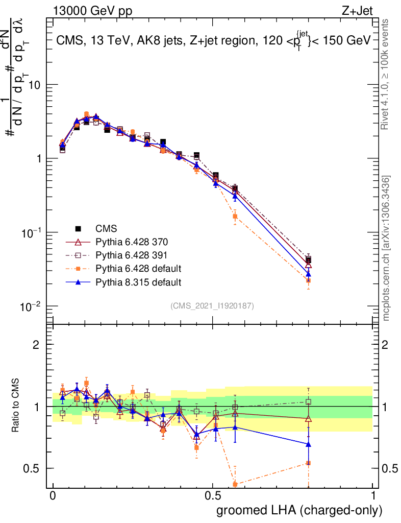 Z+Jet : Generalized angularities : Groomed LHA λ