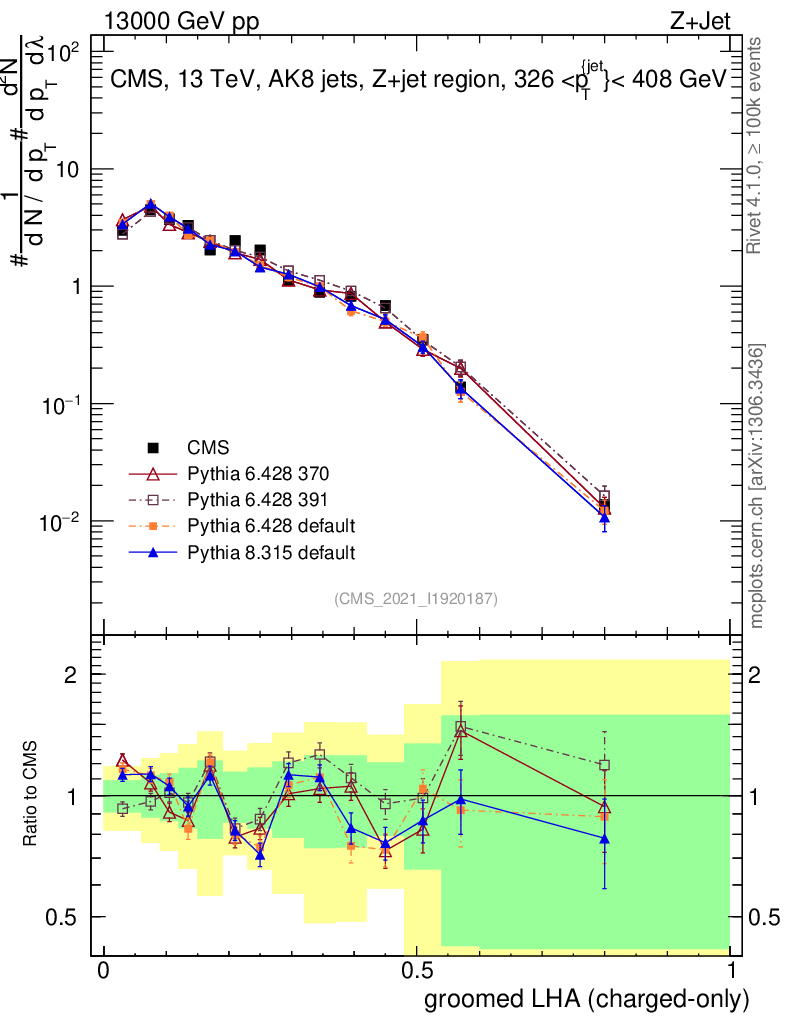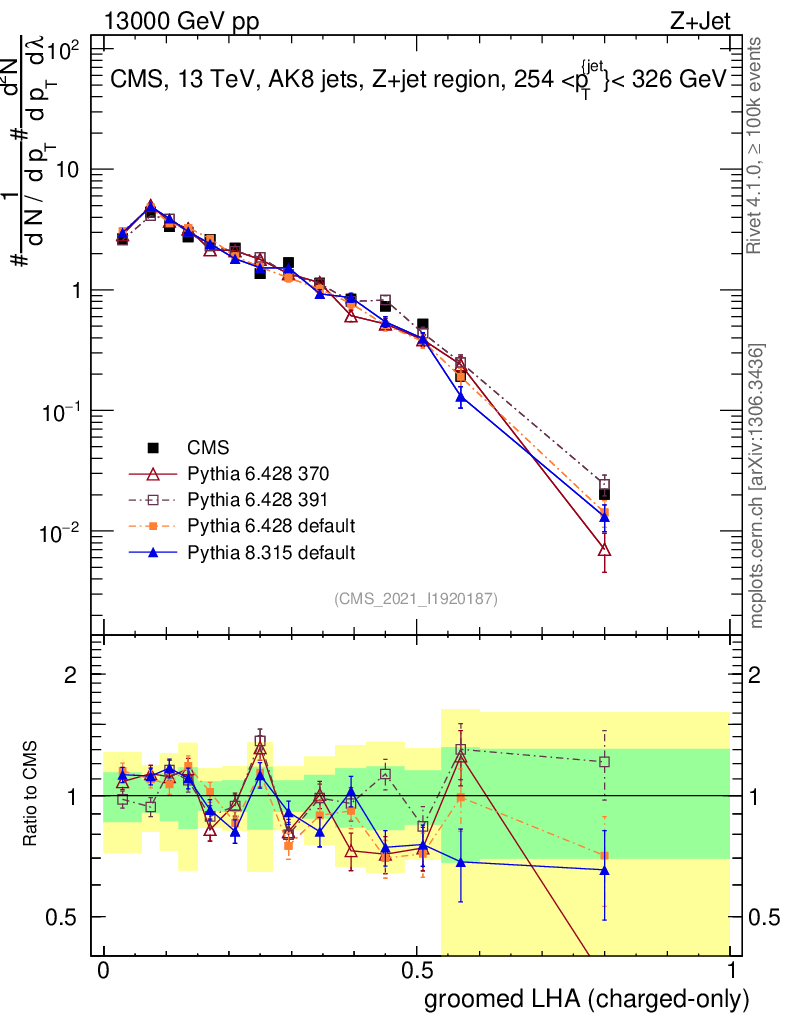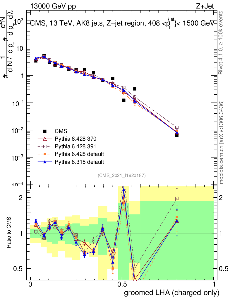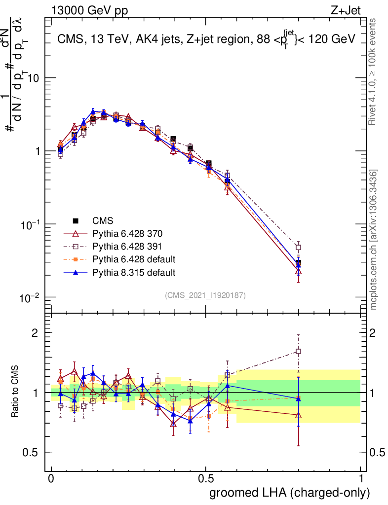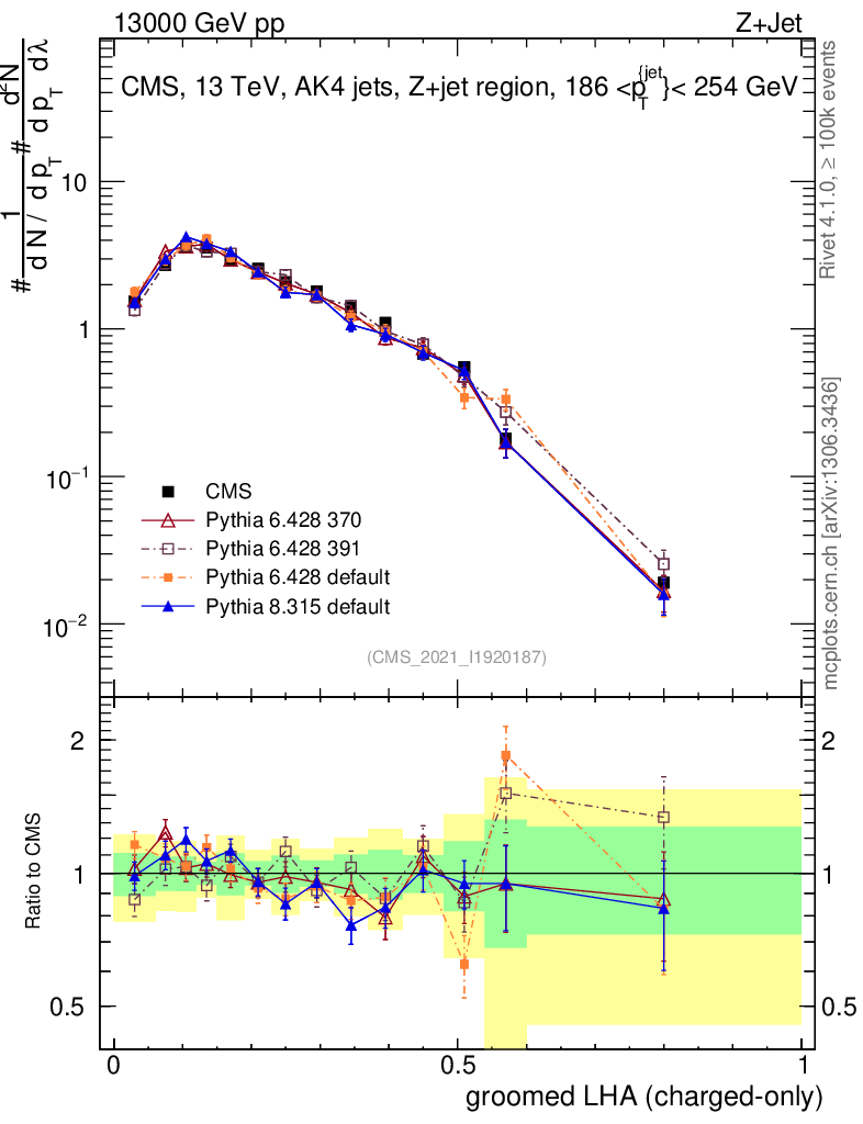 Z+Jet : Generalized angularities : Groomed LHA λ