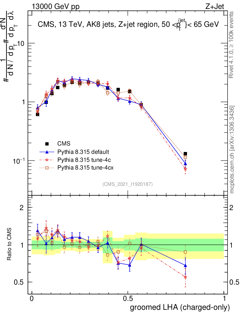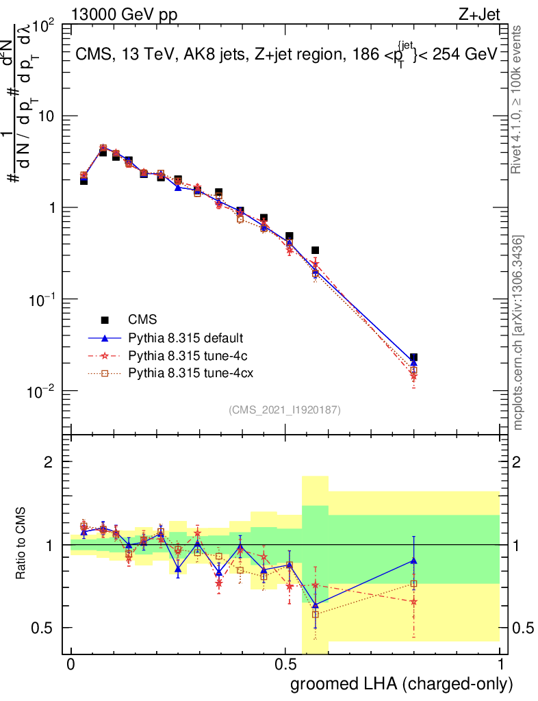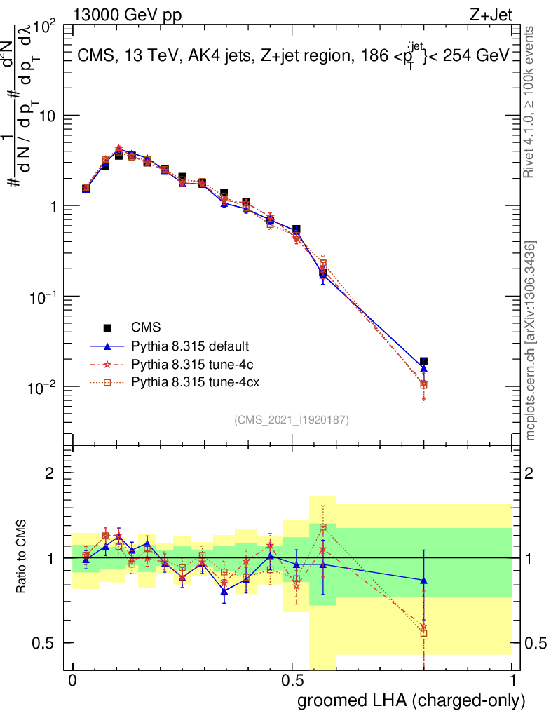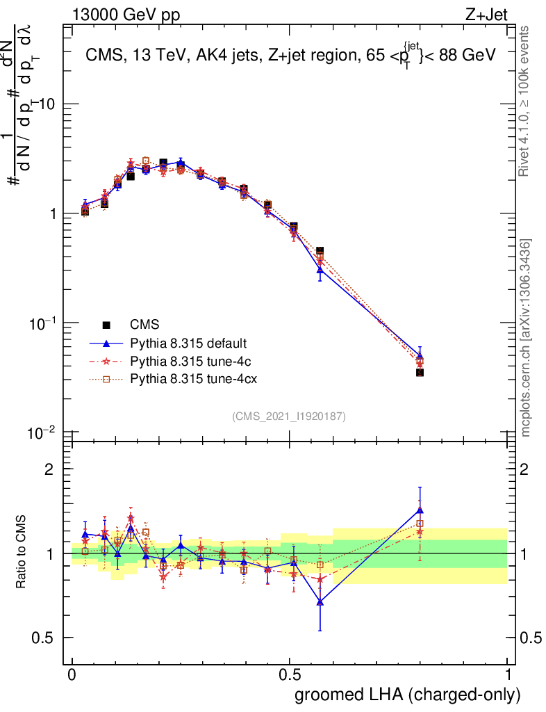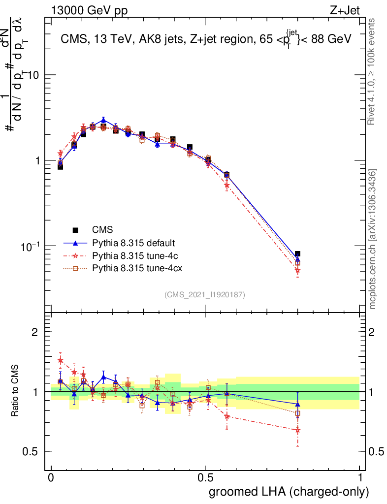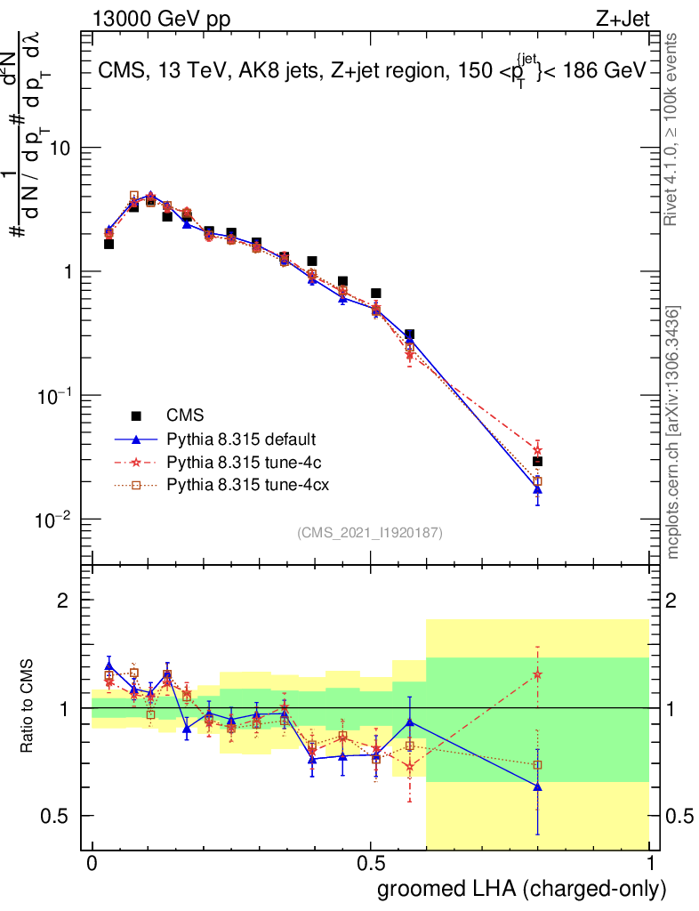 Z+Jet : Generalized angularities : Groomed LHA λ
