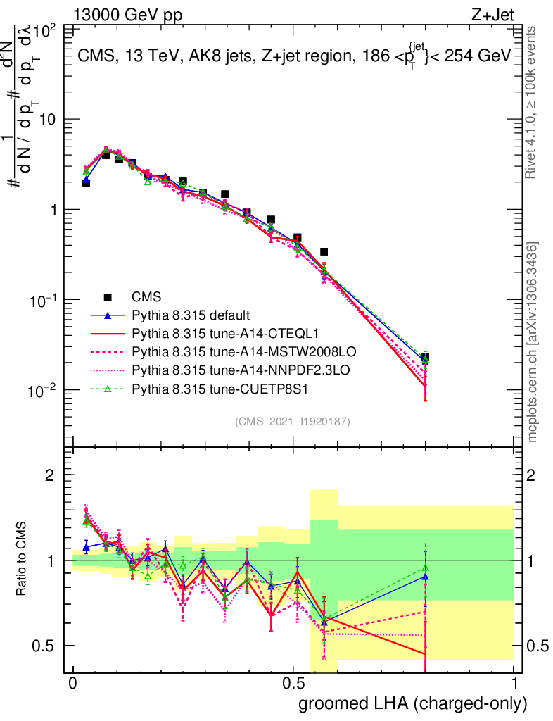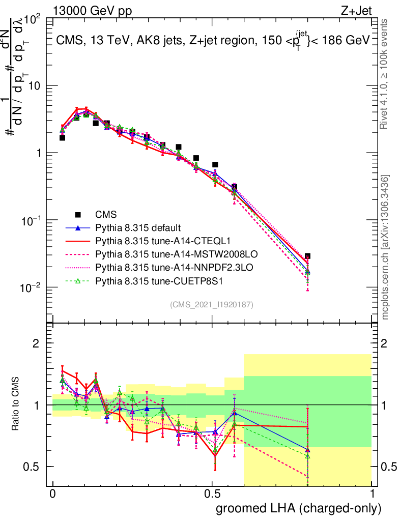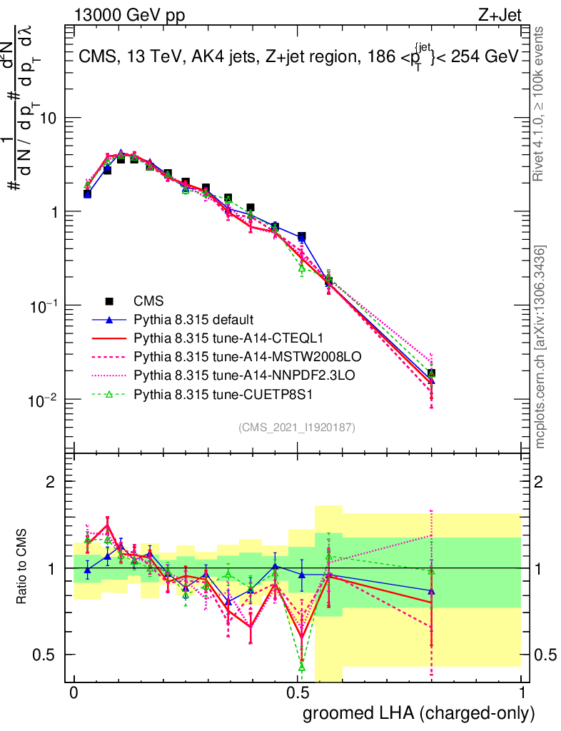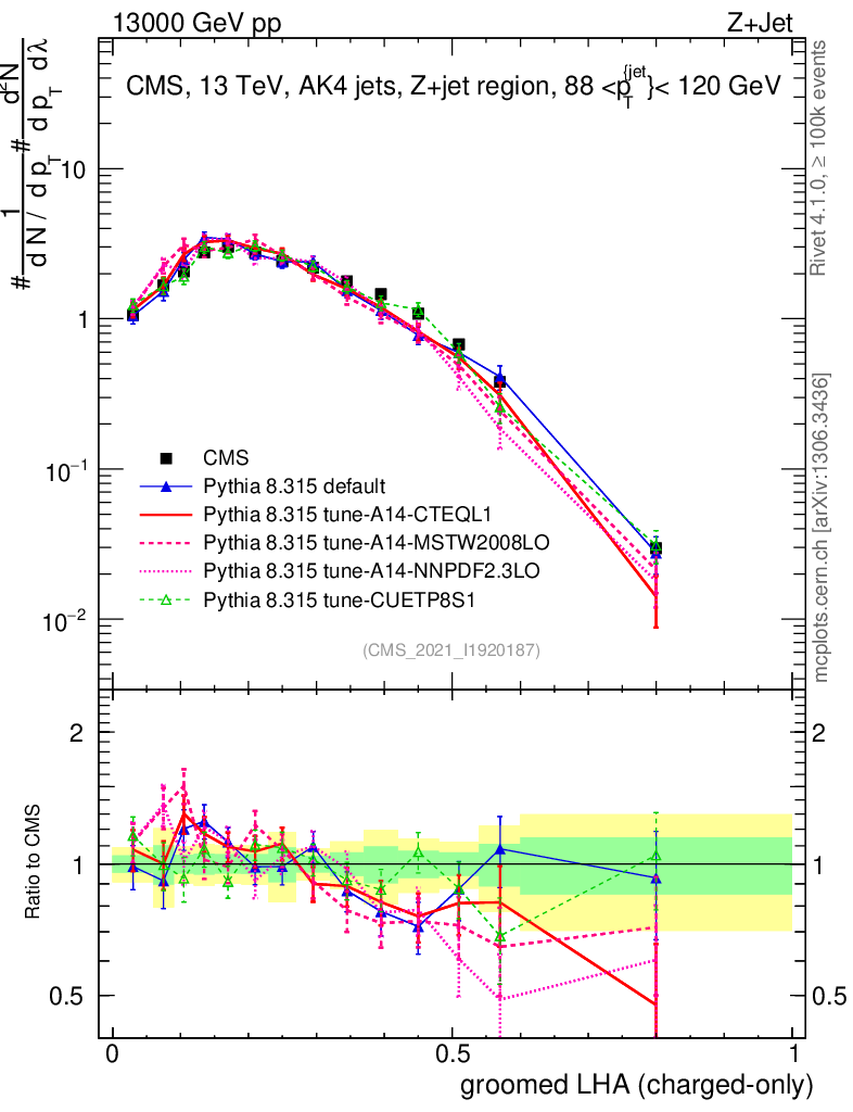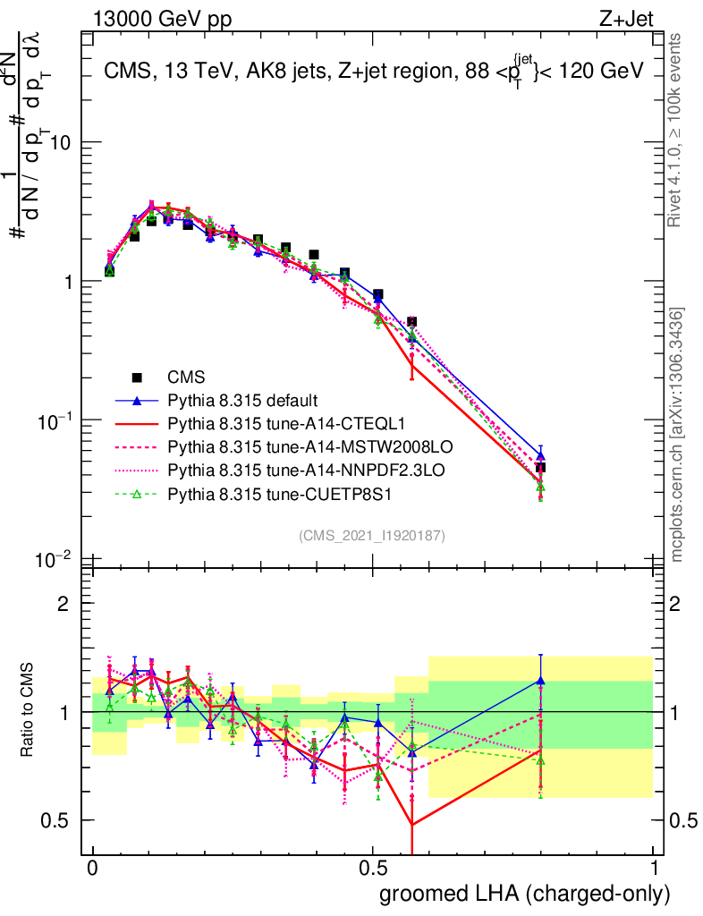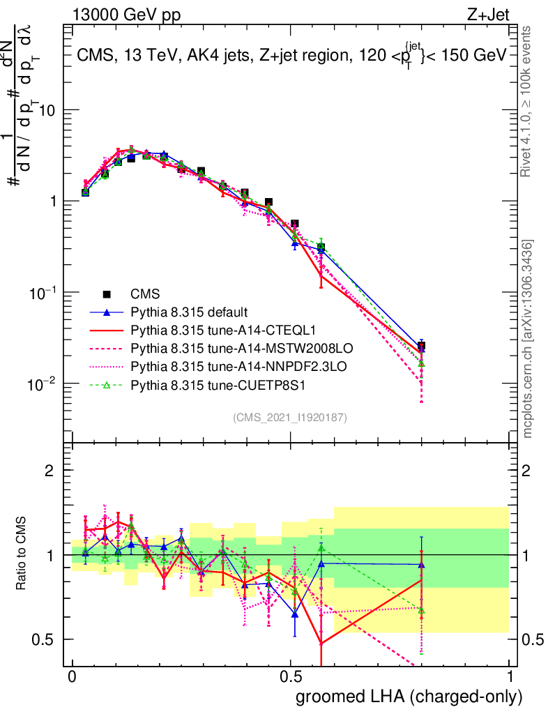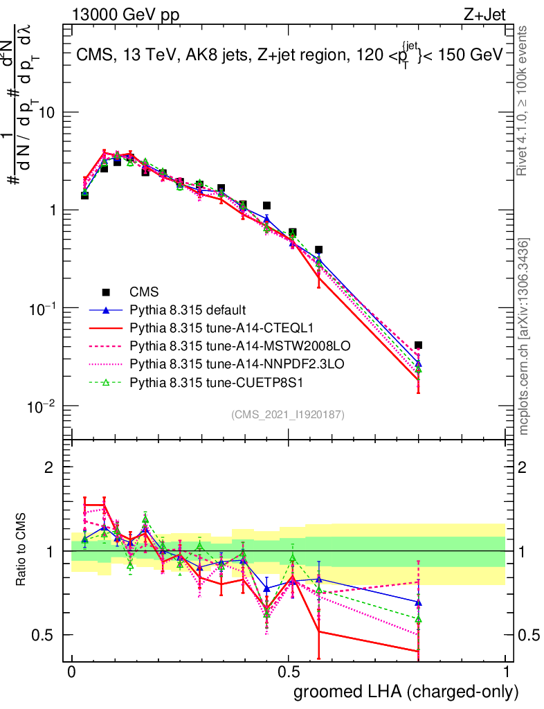 Z+Jet : Generalized angularities : Groomed LHA λ