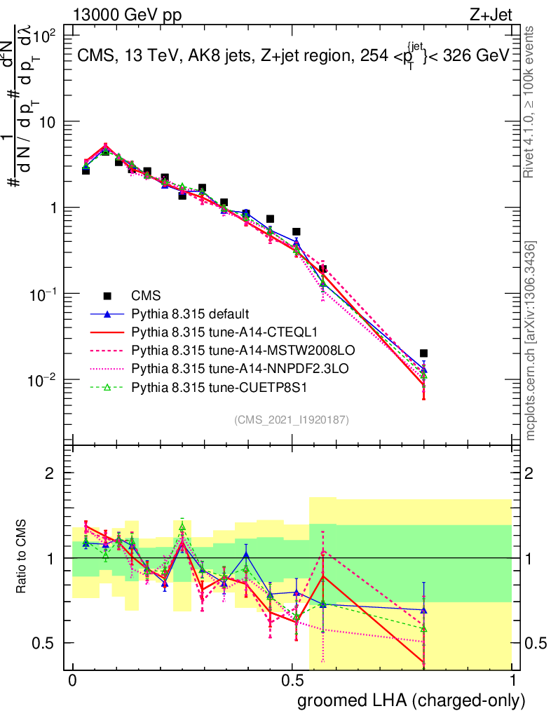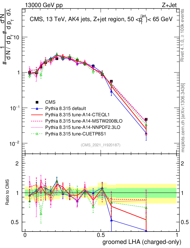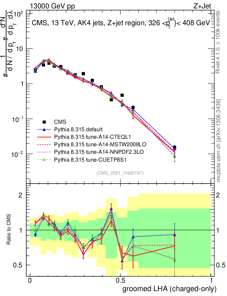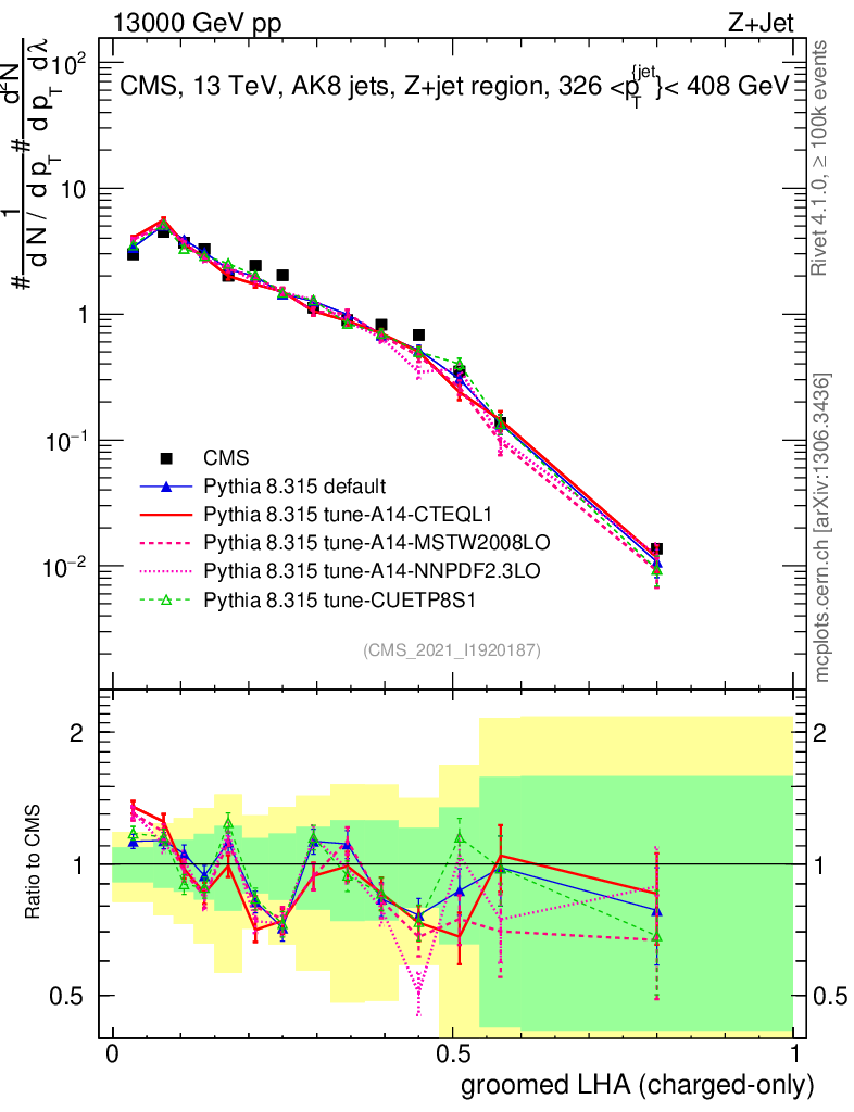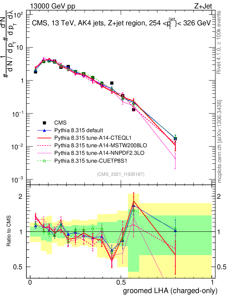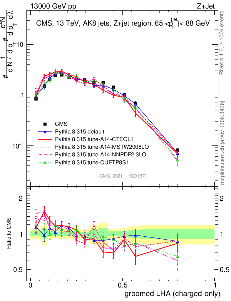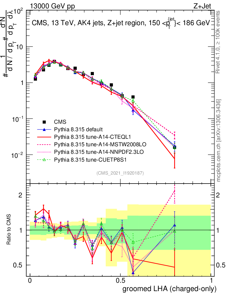 Z+Jet : Generalized angularities : Groomed LHA λ