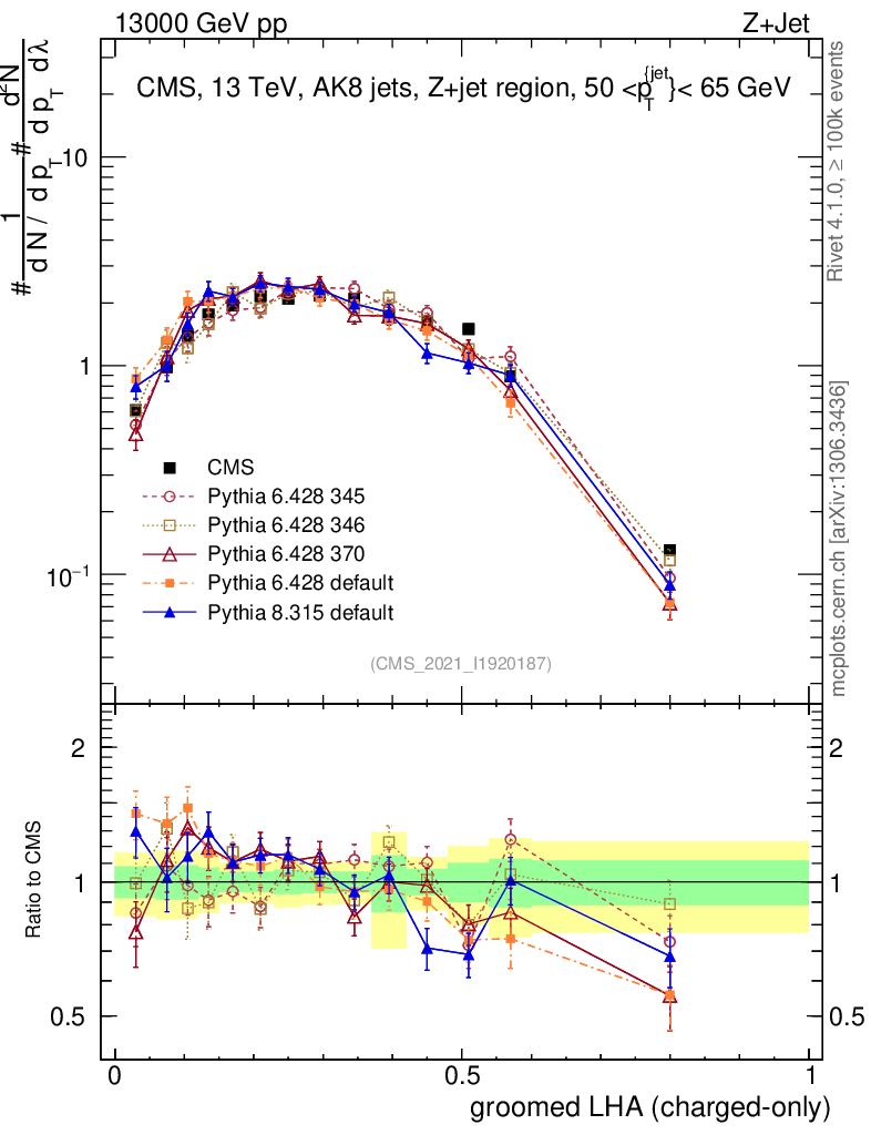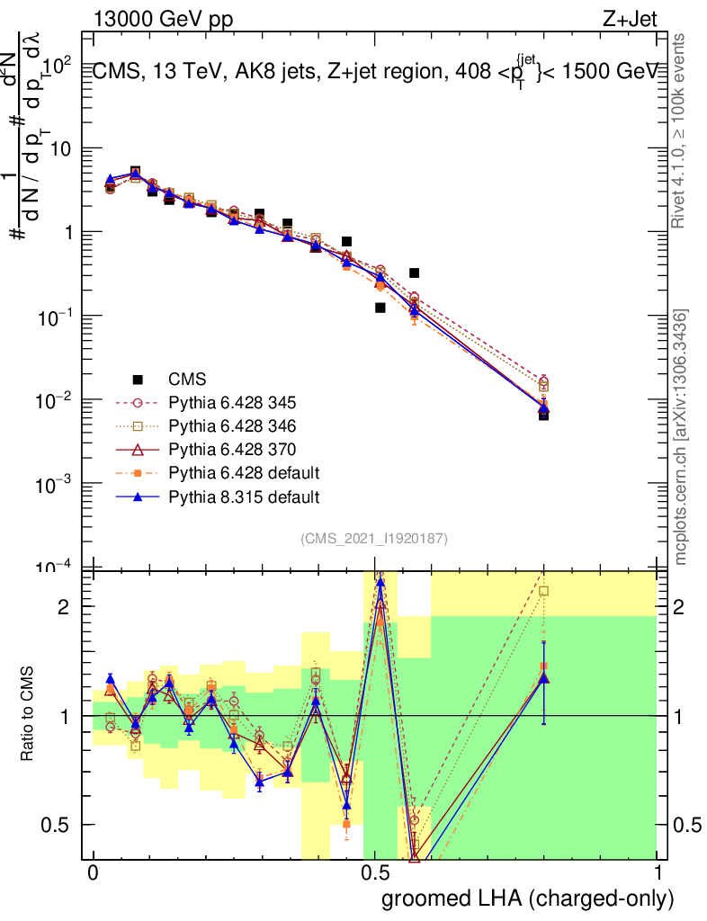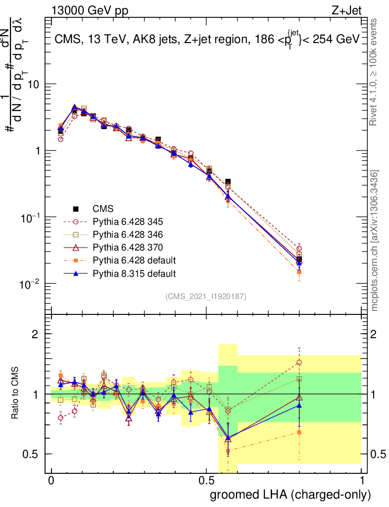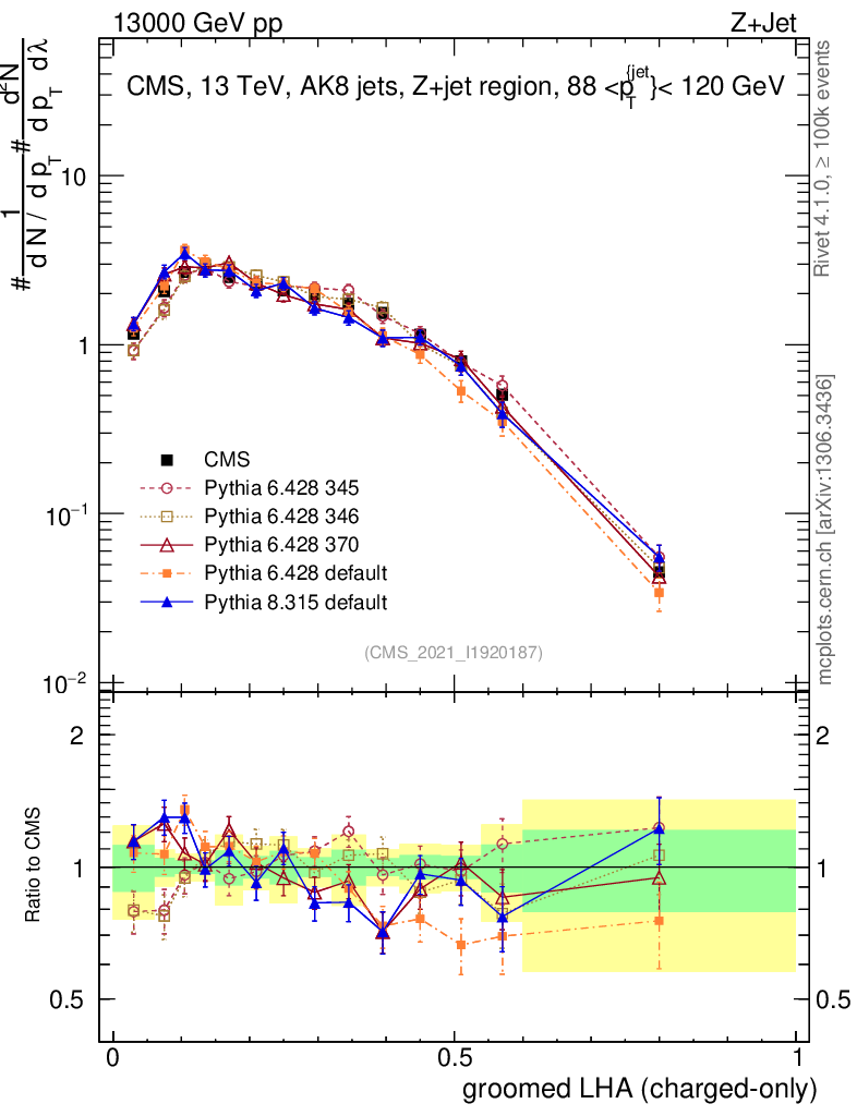 Z+Jet : Generalized angularities : Groomed LHA λ