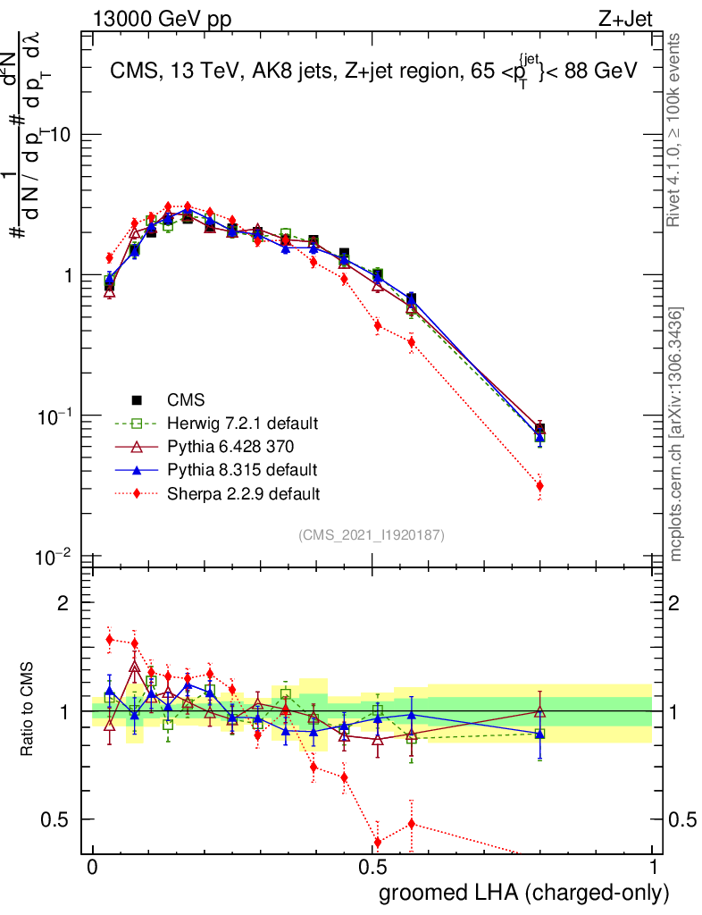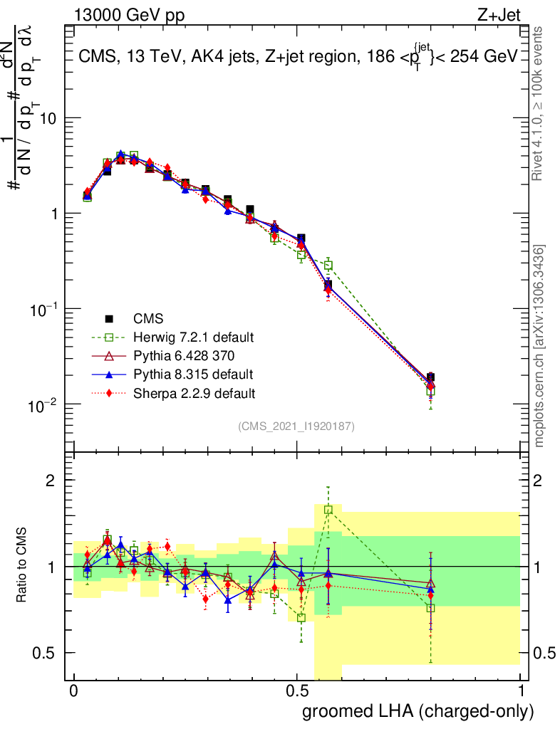 Z+Jet : Generalized angularities : Groomed LHA λ