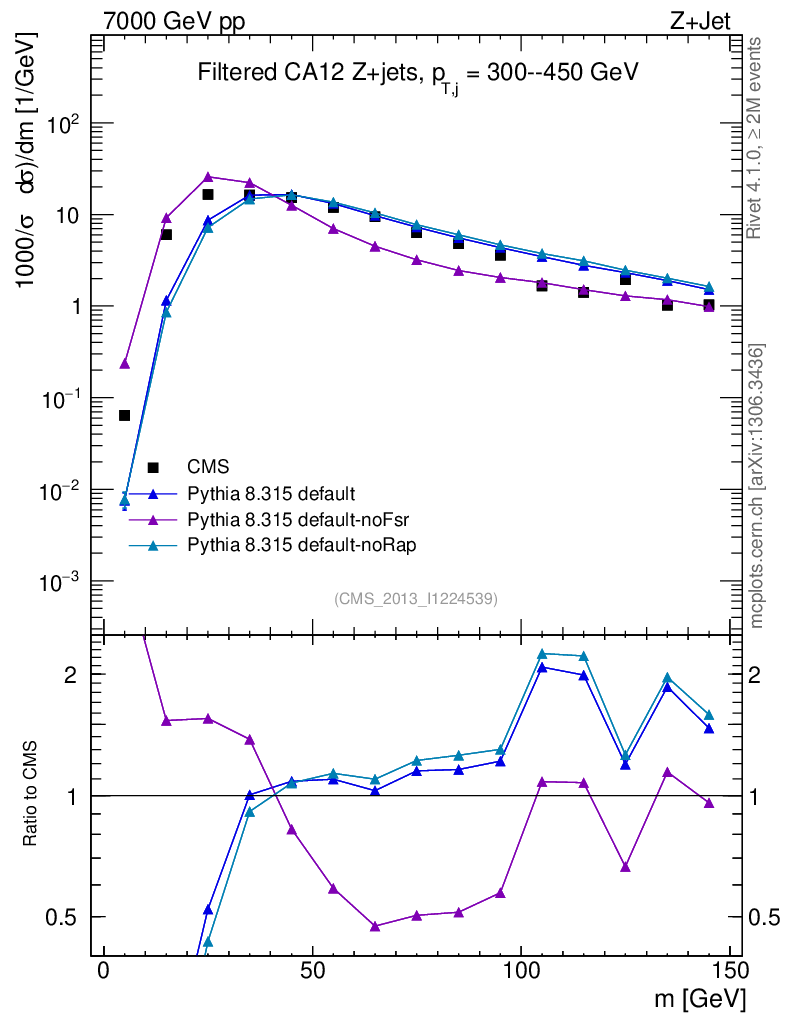Z+Jet : Jet mass : Filtered jet mass