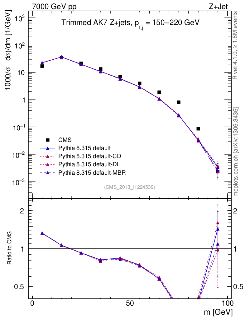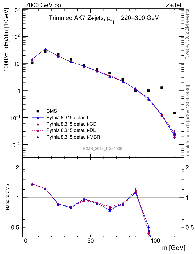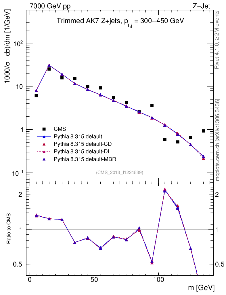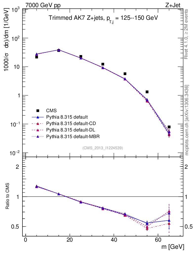 Z+Jet : Jet mass : Trimmed jet mass