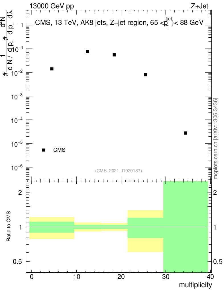 Z+Jet : Generalized angularities : Multiplicity λ00
