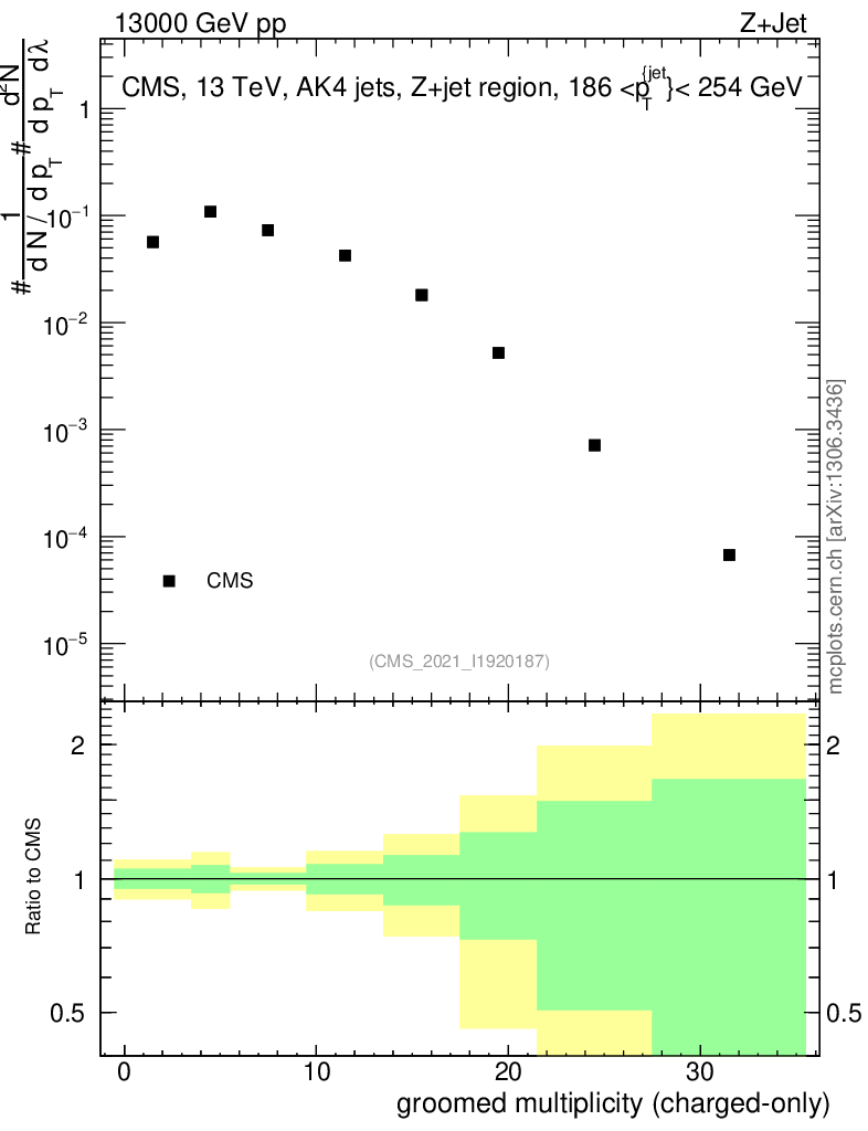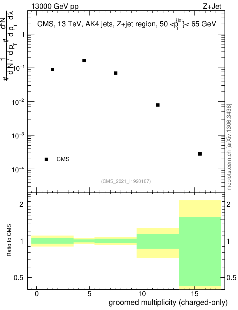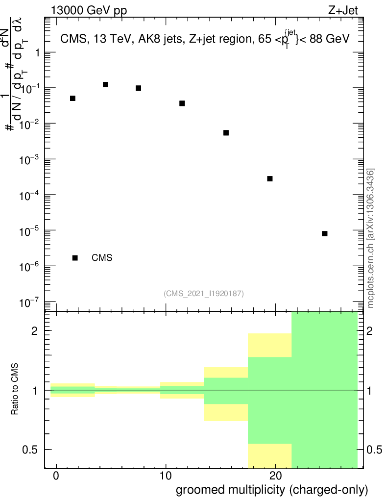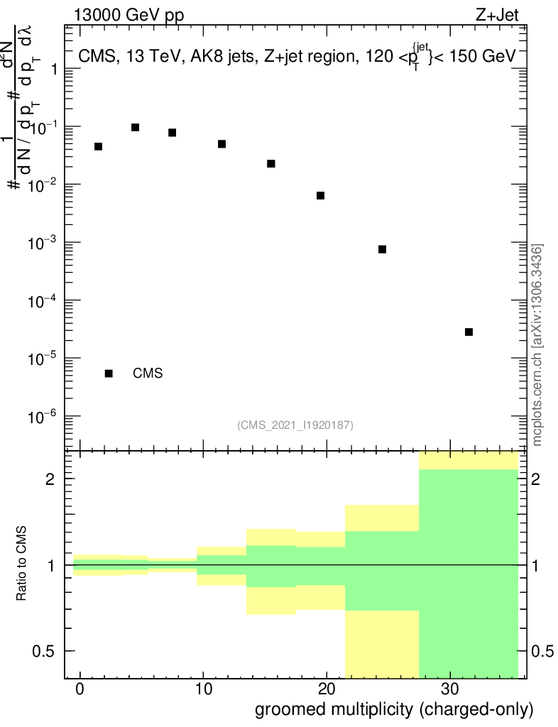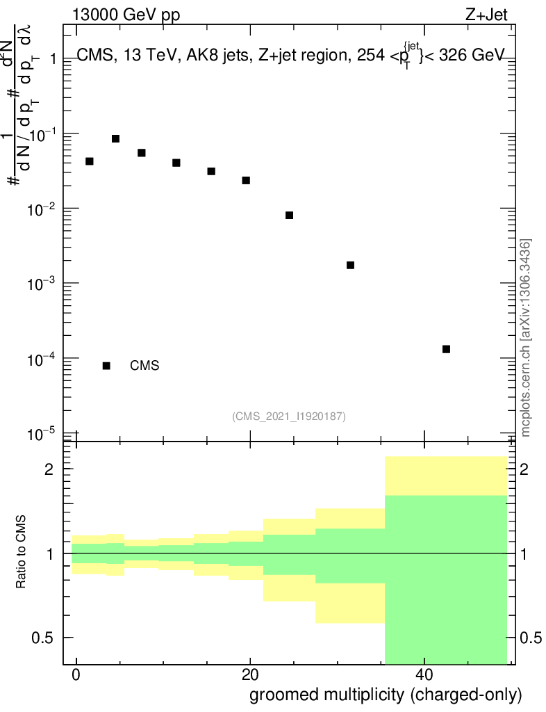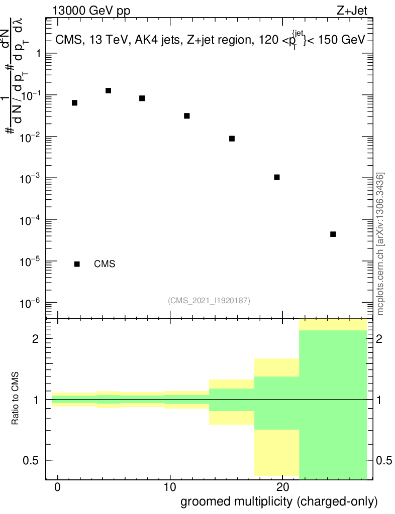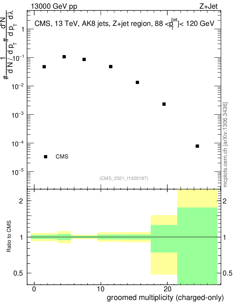 Z+Jet : Generalized angularities : Groomed multiplicity λ00 (charged only)
