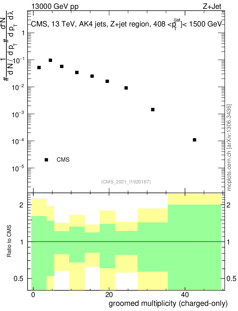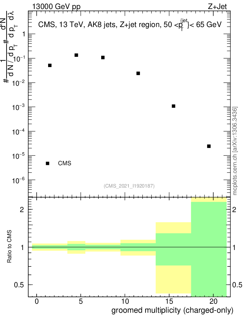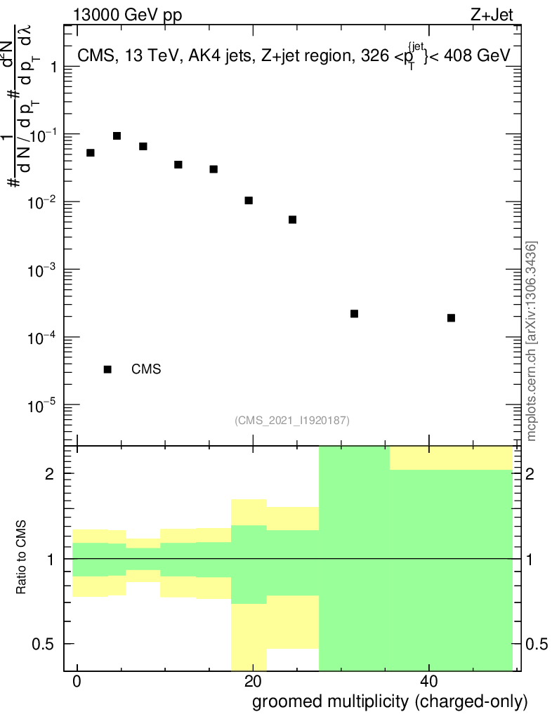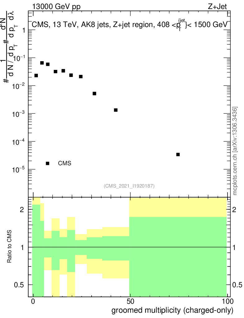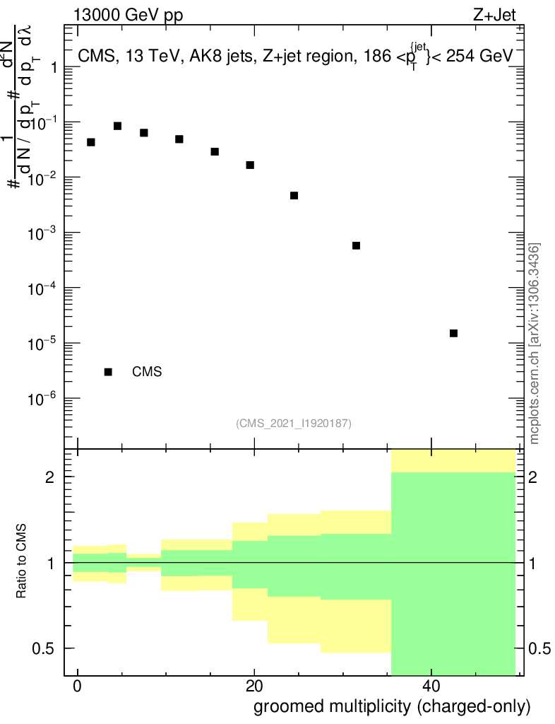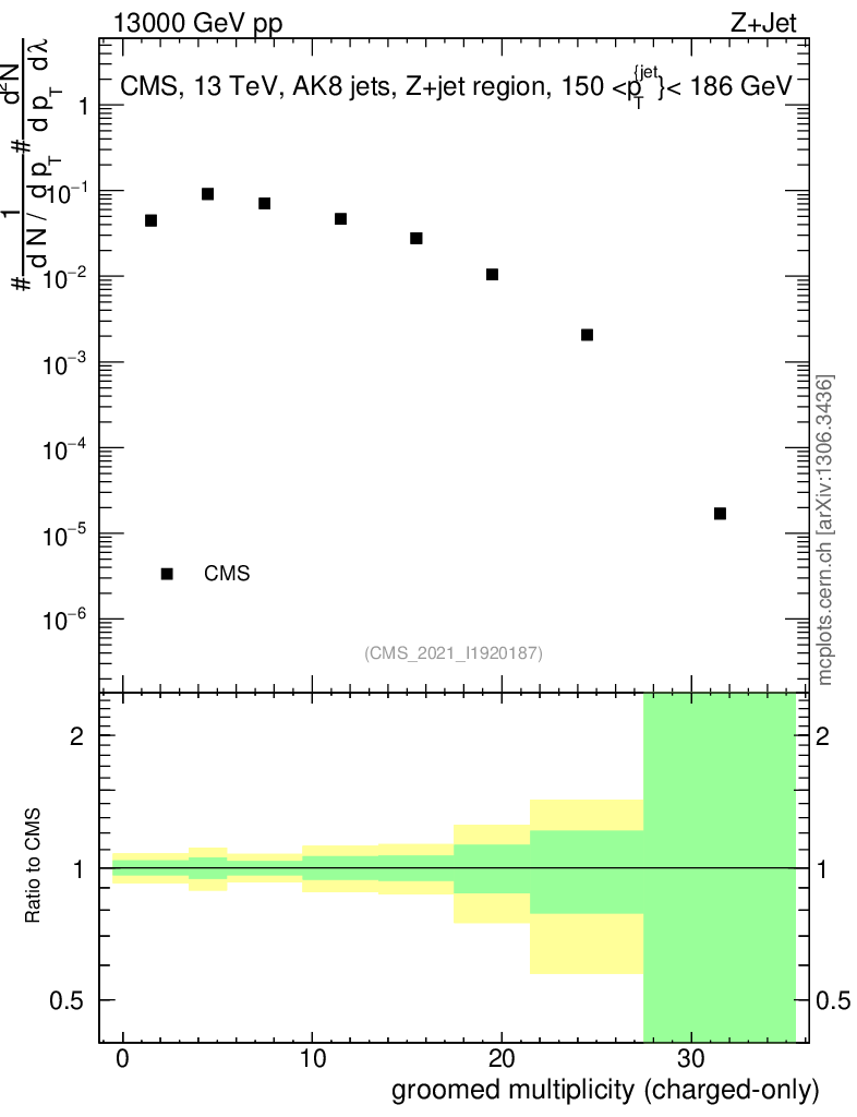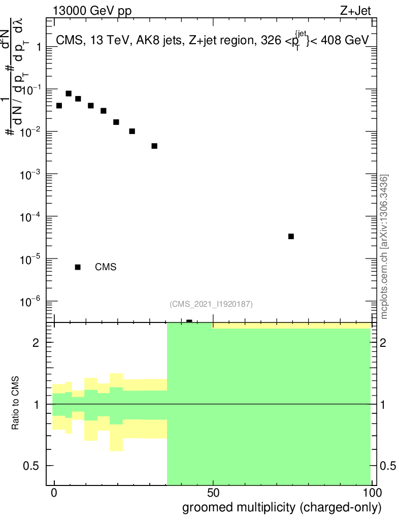 Z+Jet : Generalized angularities : Groomed multiplicity λ00 (charged only)