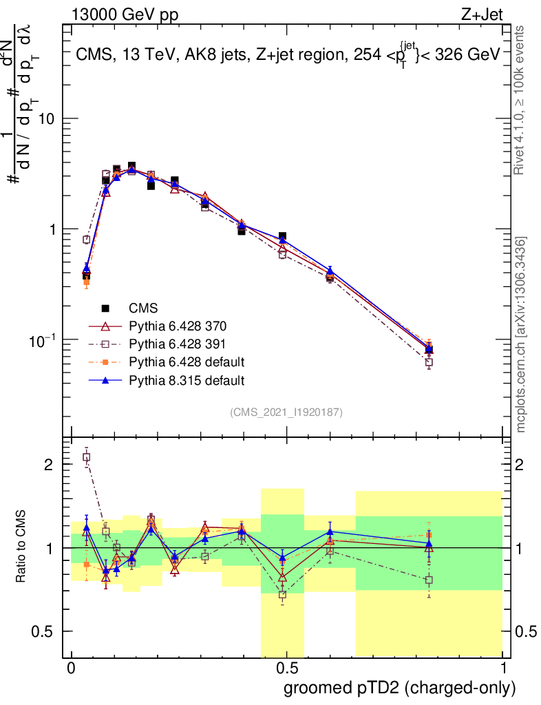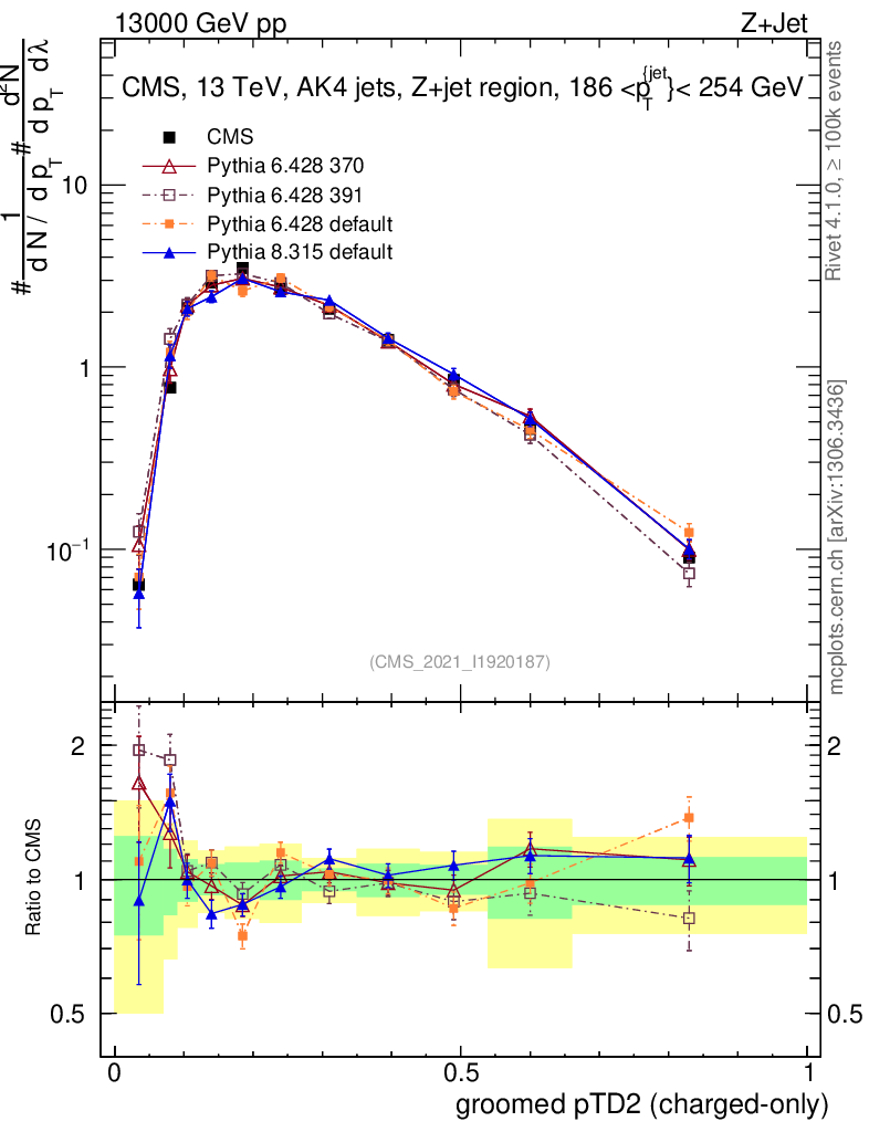 Z+Jet : Generalized angularities : Groomed (pDT)2 λ20 (charged only)