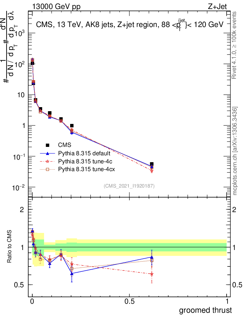 Z+Jet : Generalized angularities : Groomed thrust λ