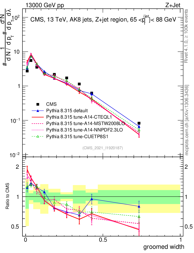 Choose generators/versions/tunes to plot : either from a pre-defined preset (left button) or from all available MCs (right button)