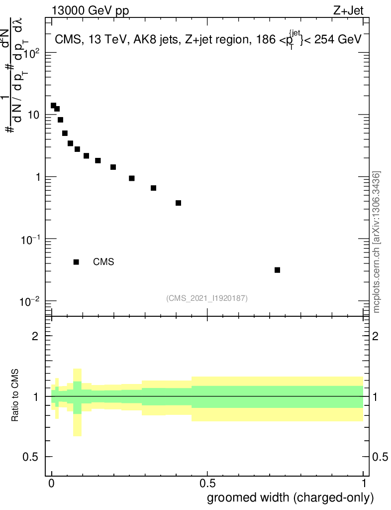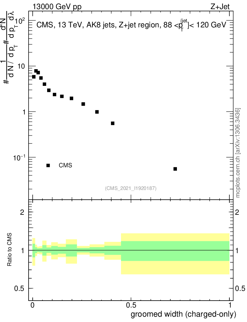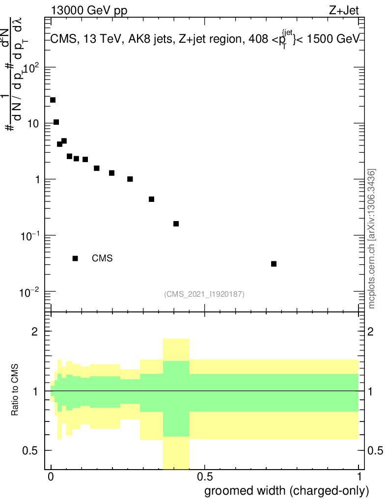 Z+Jet : Generalized angularities : Groomed width λ11 (charged only)