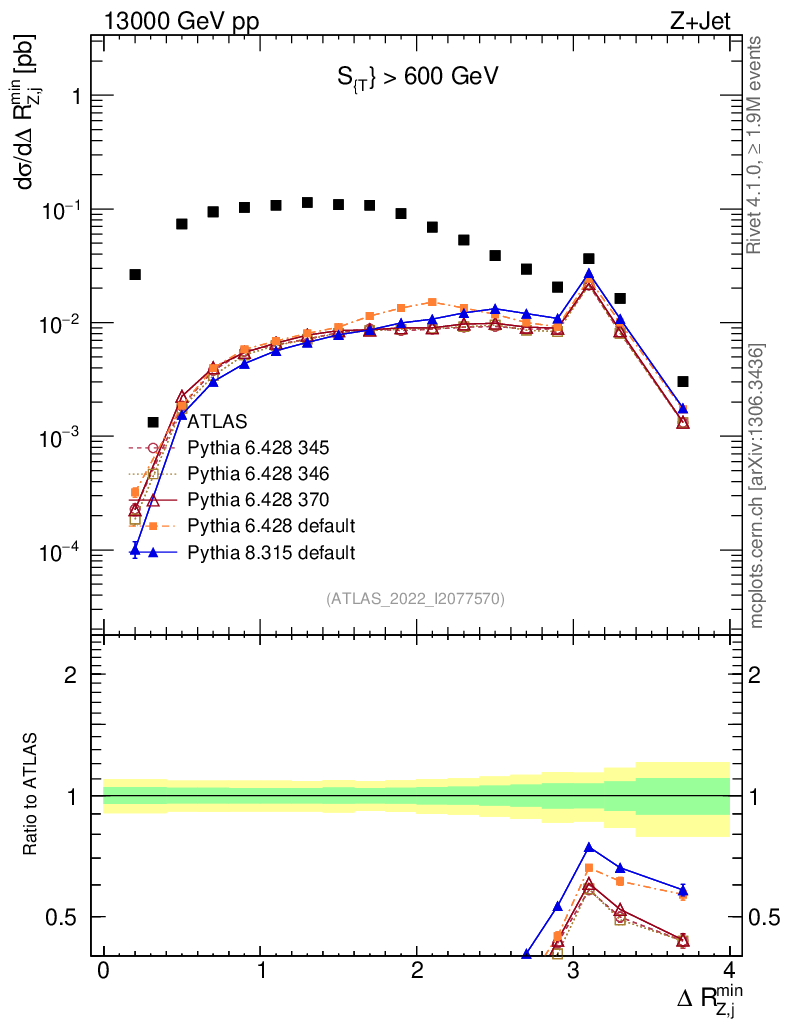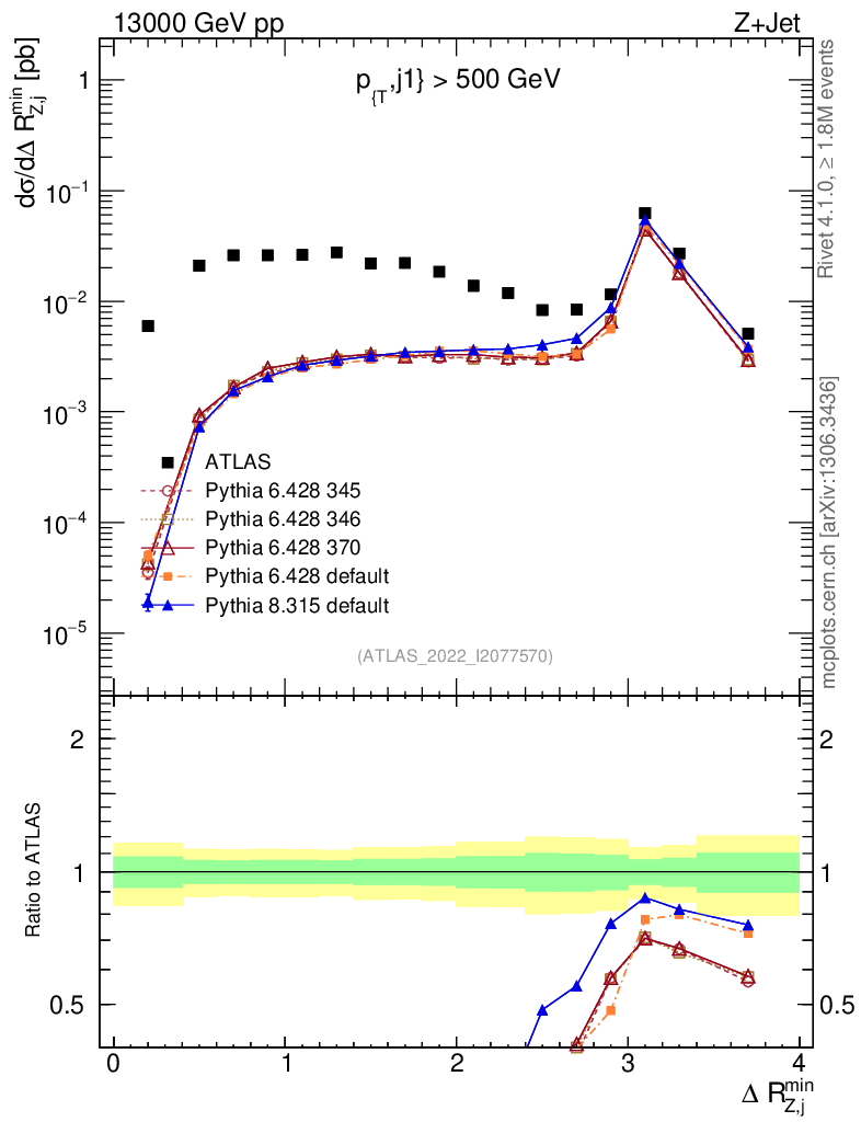 Plot of zj.dR.min in 13000 GeV pp collisions
