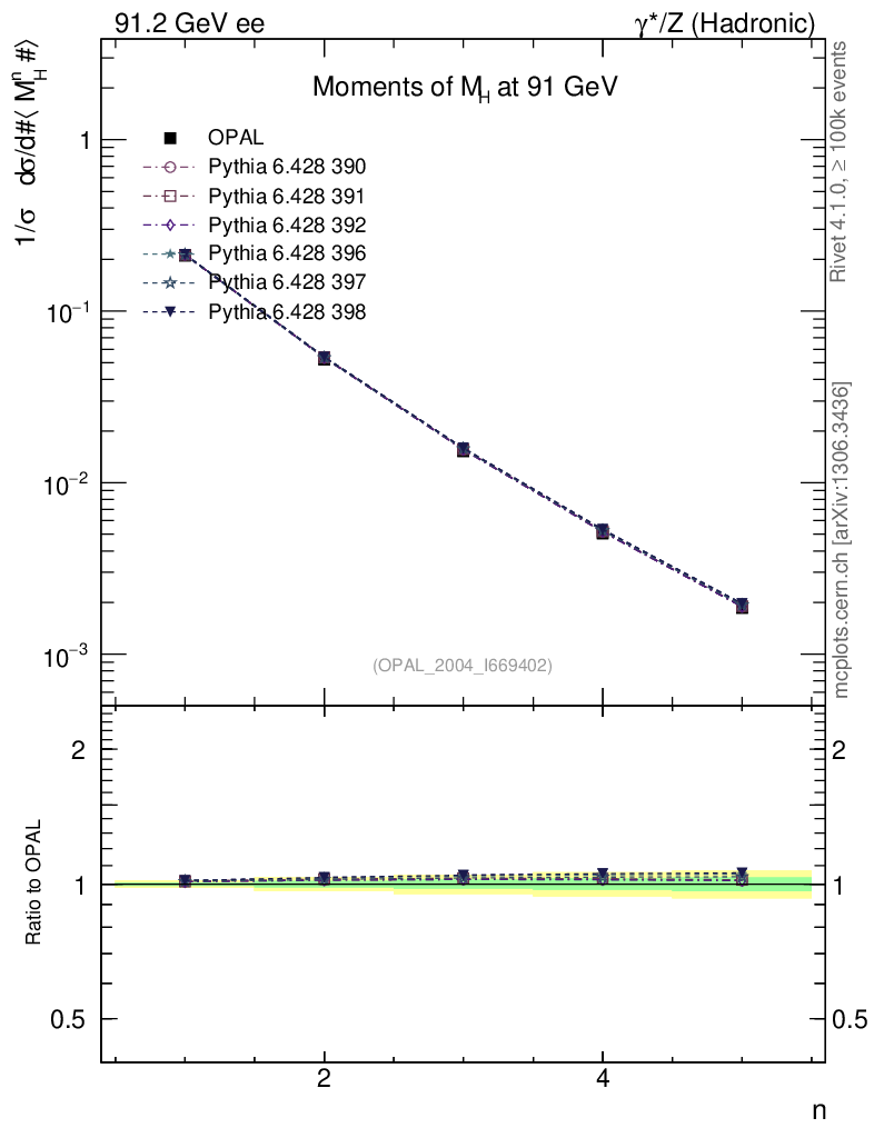 ee : γ*/Z (hadronic) : Event-Shape Moments : Moments of M