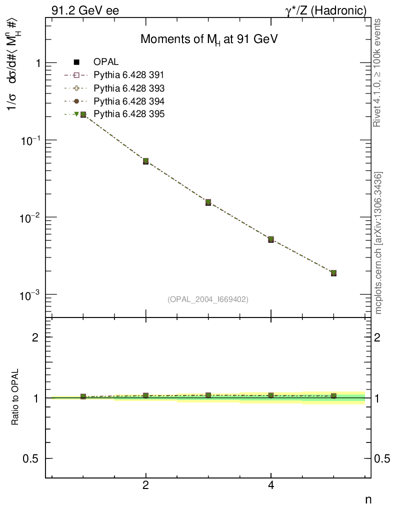 ee : γ*/Z (hadronic) : Event-Shape Moments : Moments of M
