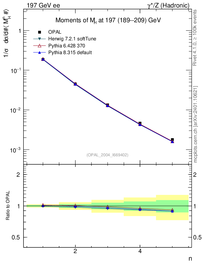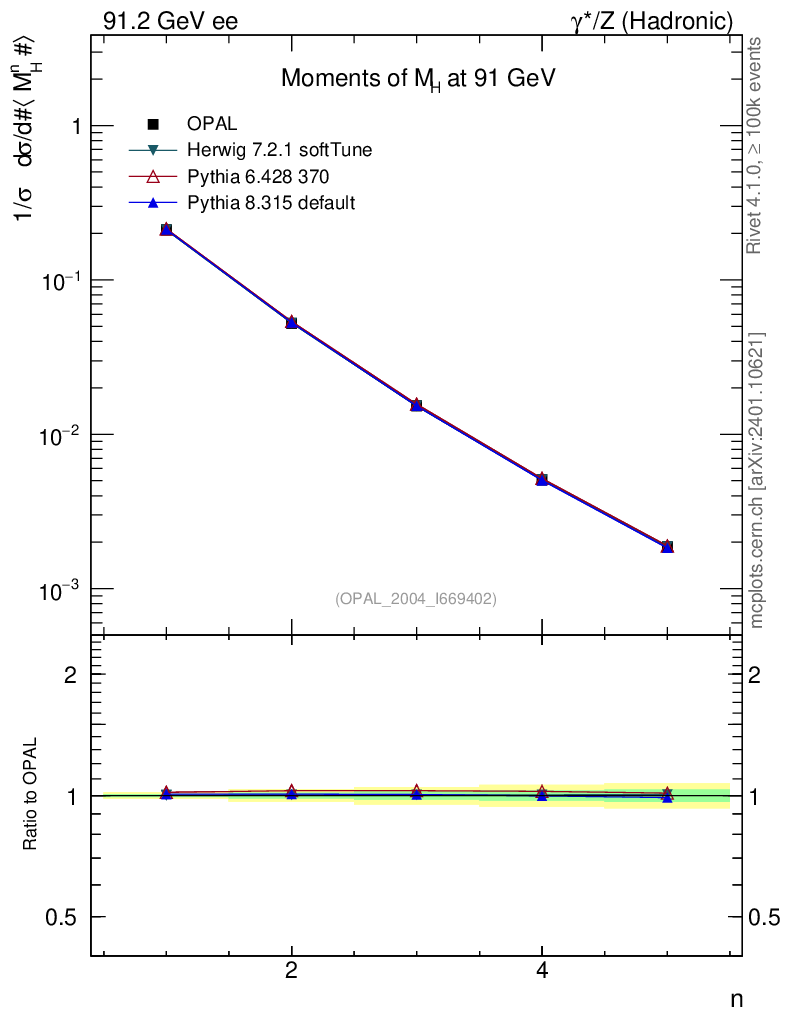 ee : γ*/Z (hadronic) : Event-Shape Moments : Moments of M