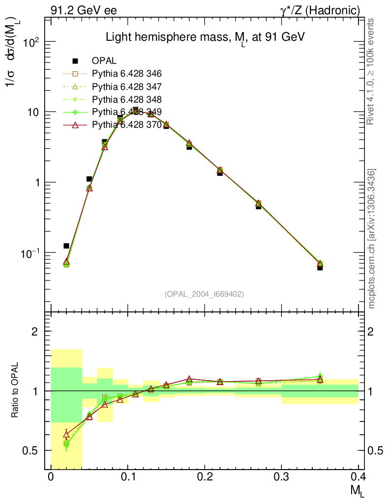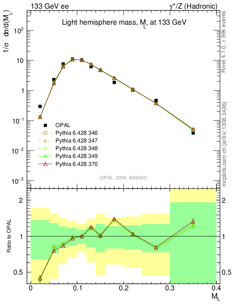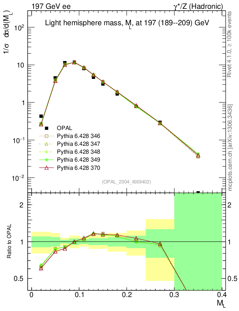ee : γ*/Z (hadronic) : M(Light Hemisph)