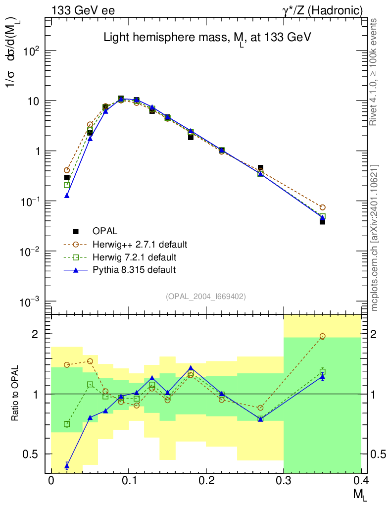 ee : γ*/Z (hadronic) : M(Light Hemisph)