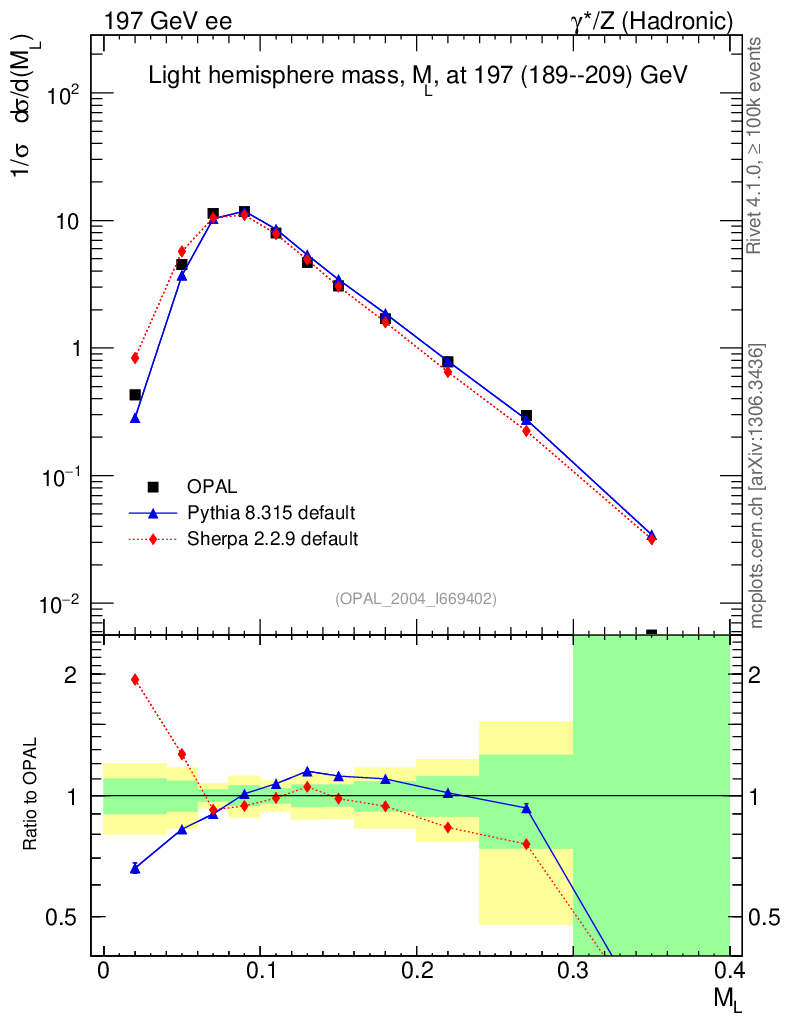 ee : γ*/Z (hadronic) : M(Light Hemisph)