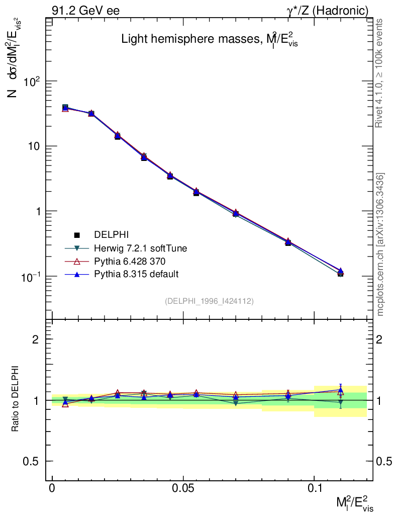 ee : γ*/Z (hadronic) : M(Light Hemisph)
