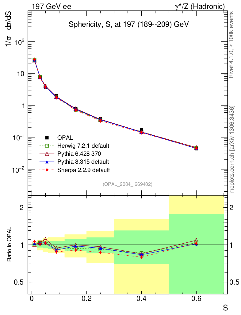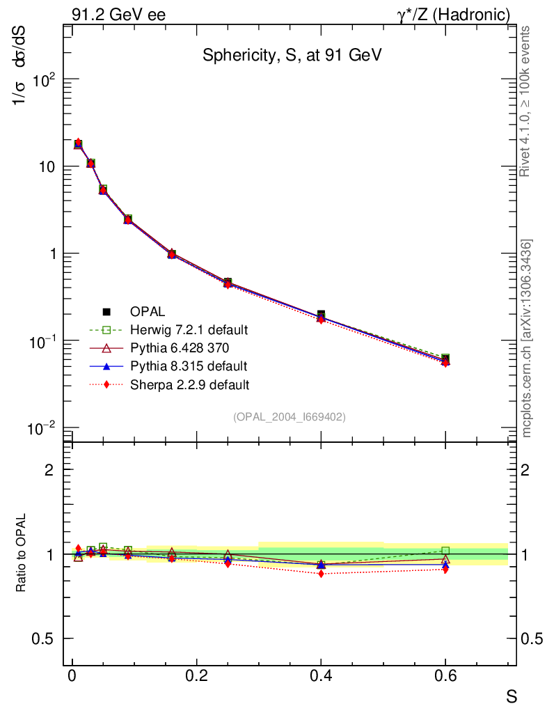 ee : γ*/Z (hadronic) : Sphericity