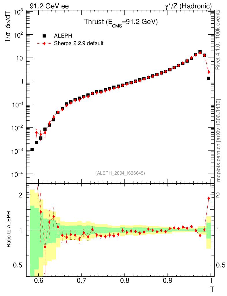 Plot of T in 91.2 GeV ee collisions