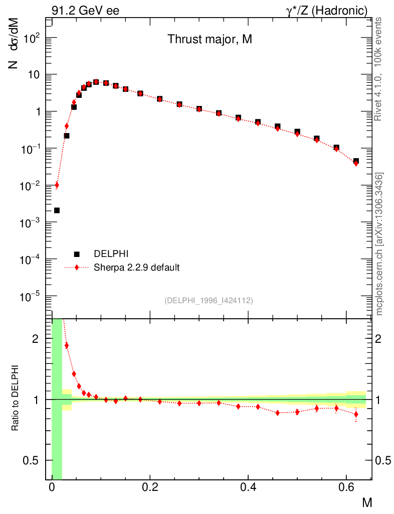 Plot of Tmajor in 91.2 GeV ee collisions
