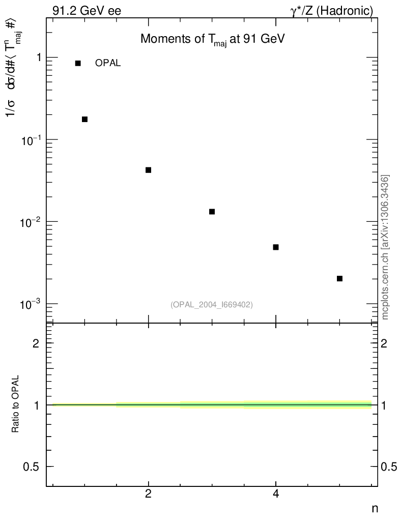 ee : γ*/Z (hadronic) : Event-Shape Moments : Moments of T Major