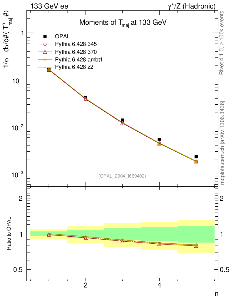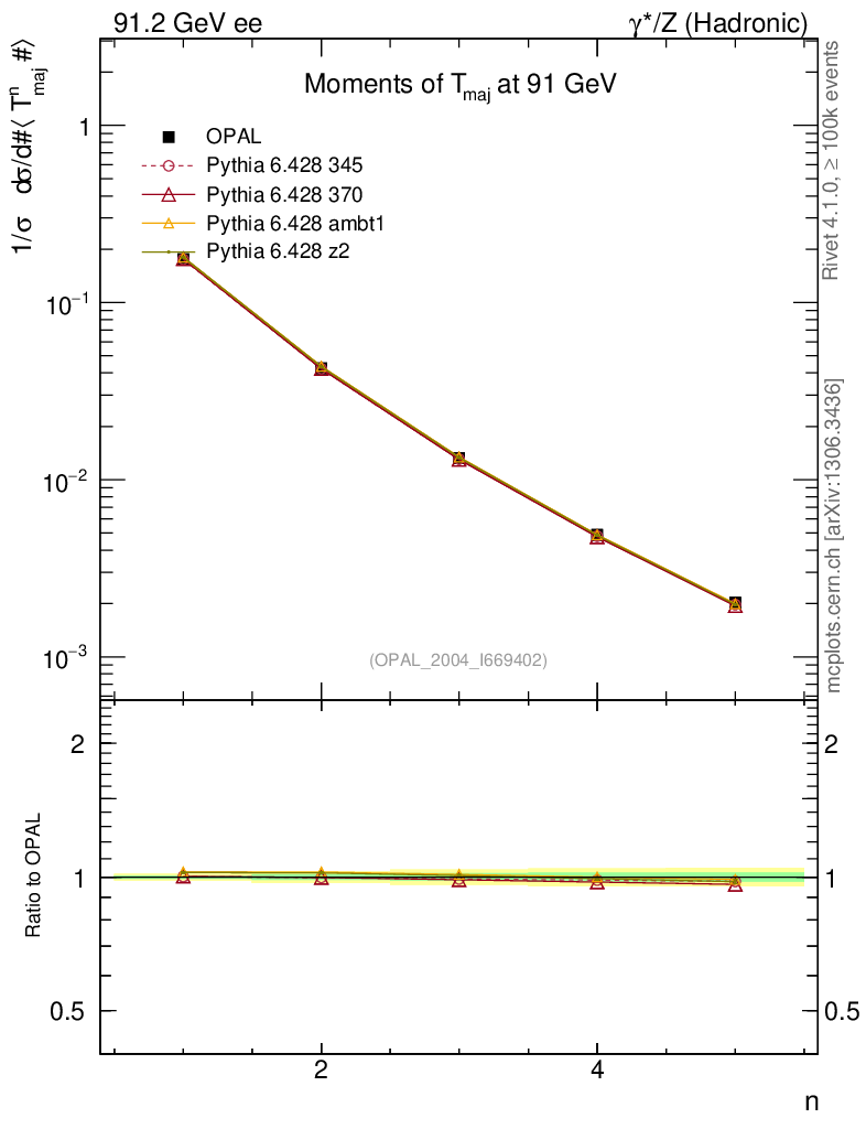 ee : γ*/Z (hadronic) : Event-Shape Moments : Moments of T Major